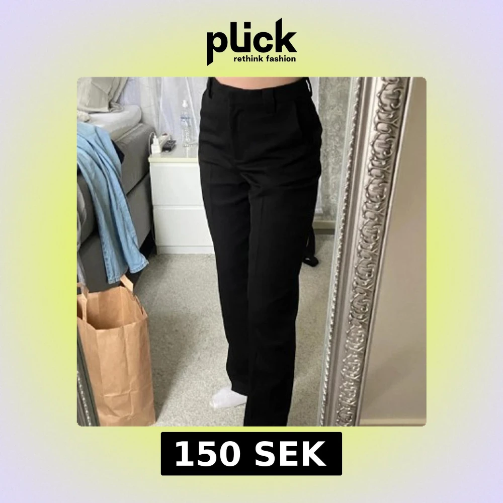 Snygga svarta kostymbyxor med ett väldigt fint material. Använda max 3 gånger, mycket bra skick! Lite insydda i midja samt höfter, passar mig med storlek 34/36! (Inte mina bilder)