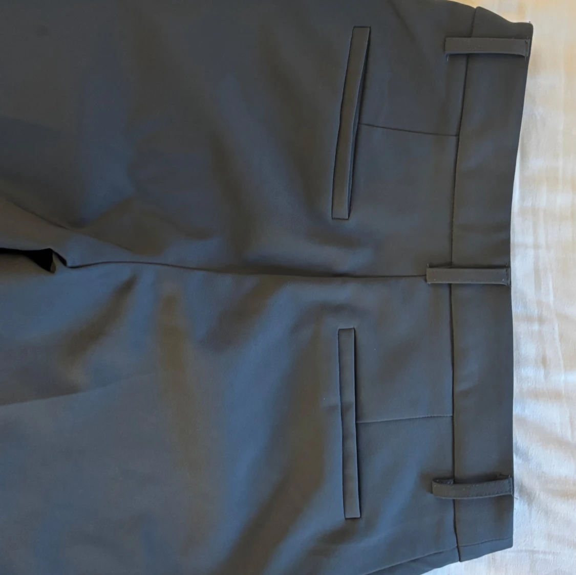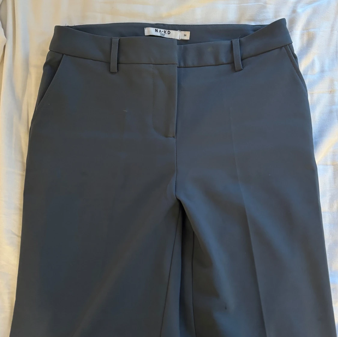Snygga mörkgrå kostymbyxor från NA-KD med raka ben, hällor för bälte och diskreta fickor både fram och bak. Byxorna har en klassisk look och är tillverkade i ett slätt material som ger en stilren vibe.