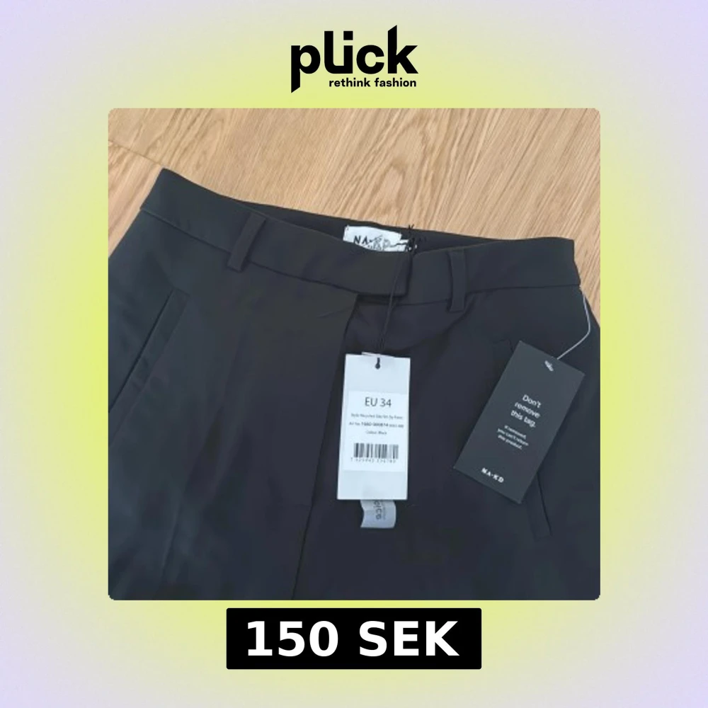 Svarta kostymbyxor från NA-KD i rak modell med hög midja. Byxorna har dragkedjor vid bensluten för en snygg detalj och är tillverkade i ett slätt, återvunnet material. Perfekta för en clean och stilren look.