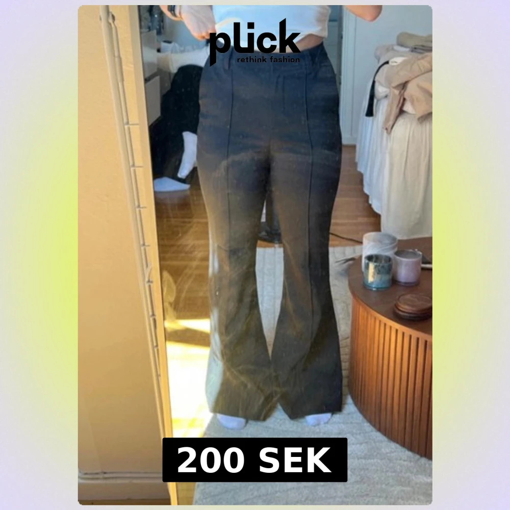 Snygga svarta kostymbyxor från NA-KD i bootcut-modell med hög midja. Byxorna har pressveck framtill, bälteshällor och klassisk stängning.