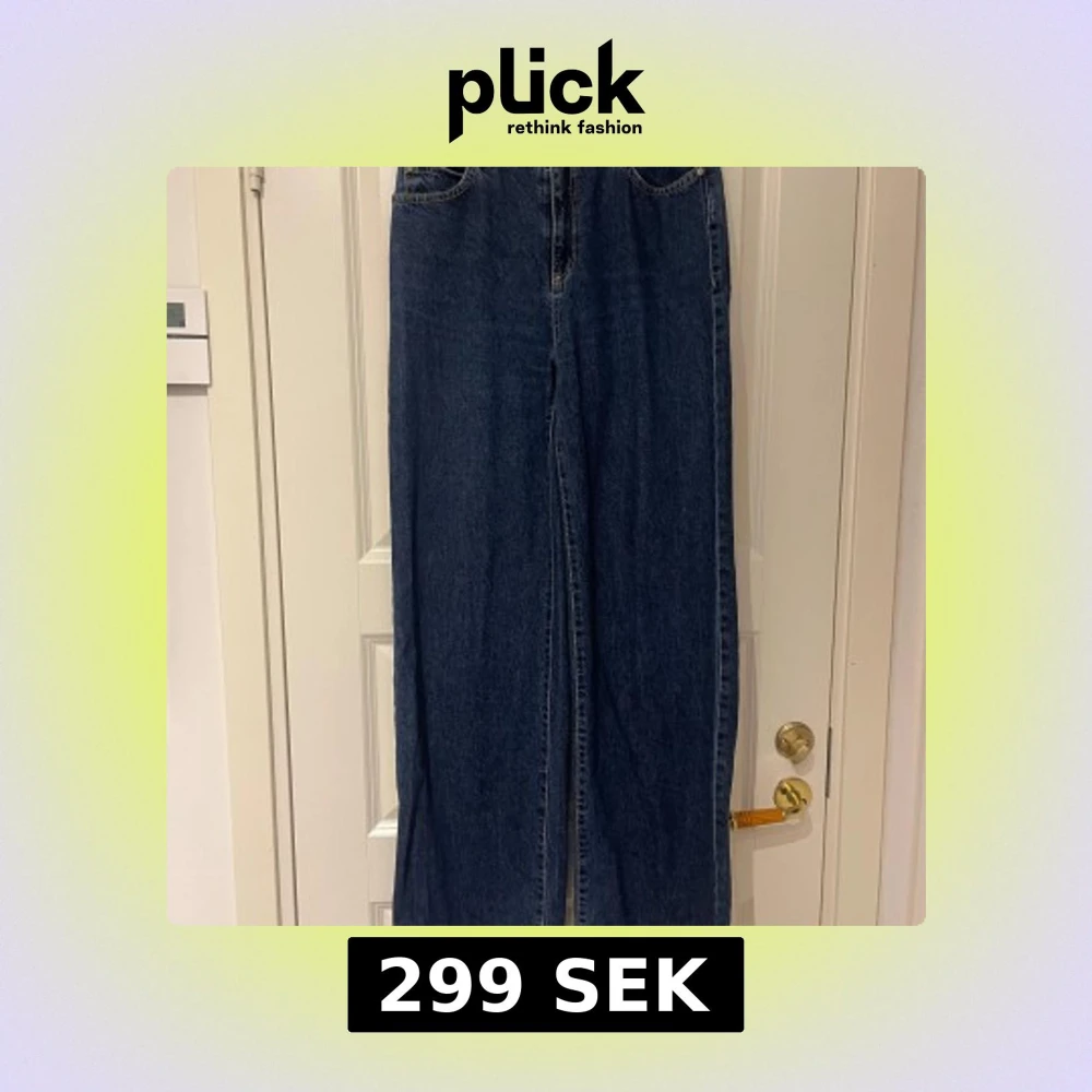 Säljer ett par blå jeans från Trendyol, köpta på NAKD, med wide leg-passform. Lite slitna längst ner på ena benet.