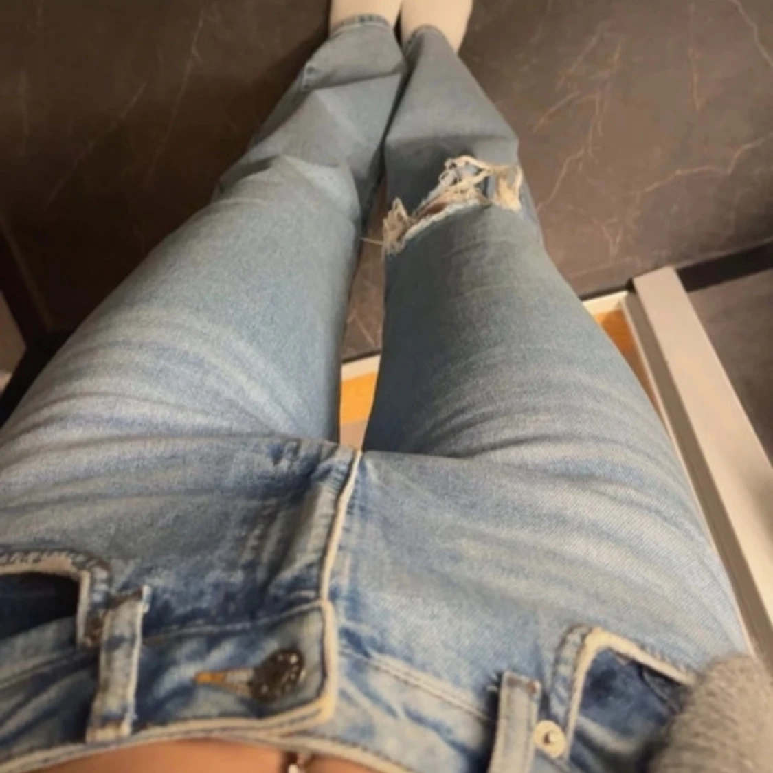 Snygga blå jeans från NA-KD med en avslappnad passform och slitna detaljer på knäet. Perfekta för en casual look. De har en klassisk femficksdesign och är tillverkade i ett bekvämt denimtyg.