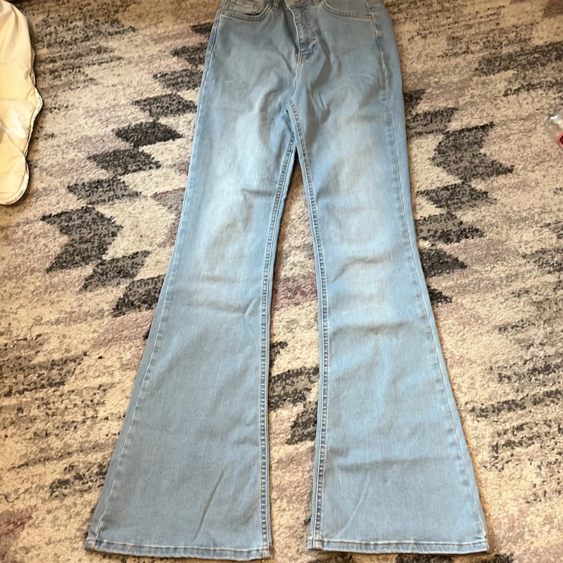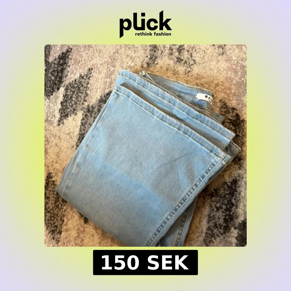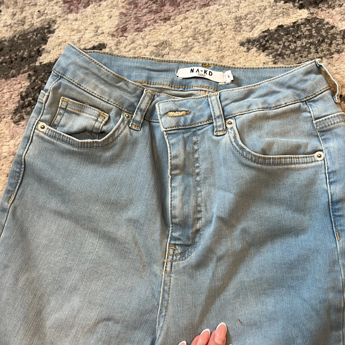 Snygga ljusblå jeans från NA-KD med klassisk femficksdesign och bootcut-ben. Jeansen har hög midja och är tillverkade i mjukt denimtyg som sitter skönt och med stretchiga:)