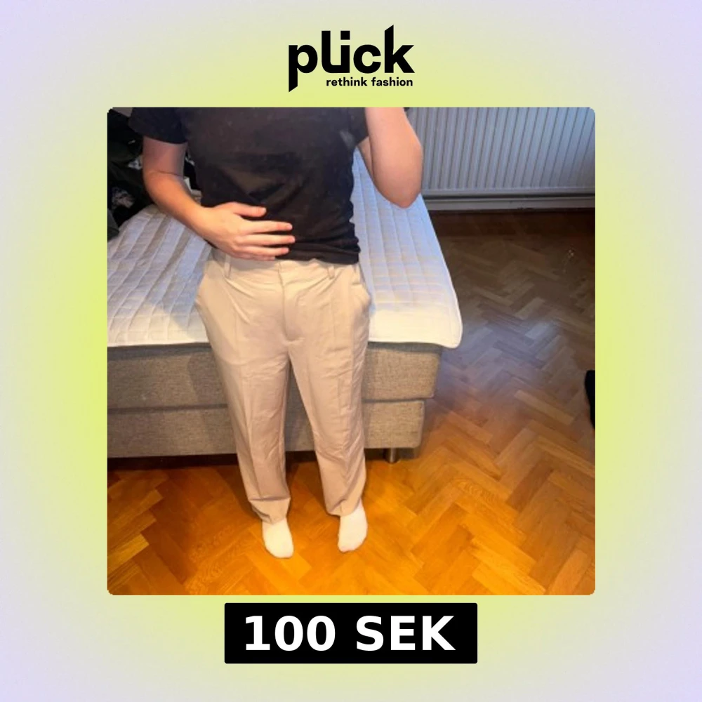 Snygga beige kostymbyxor med raka ben och hög midja. Använa en gång.