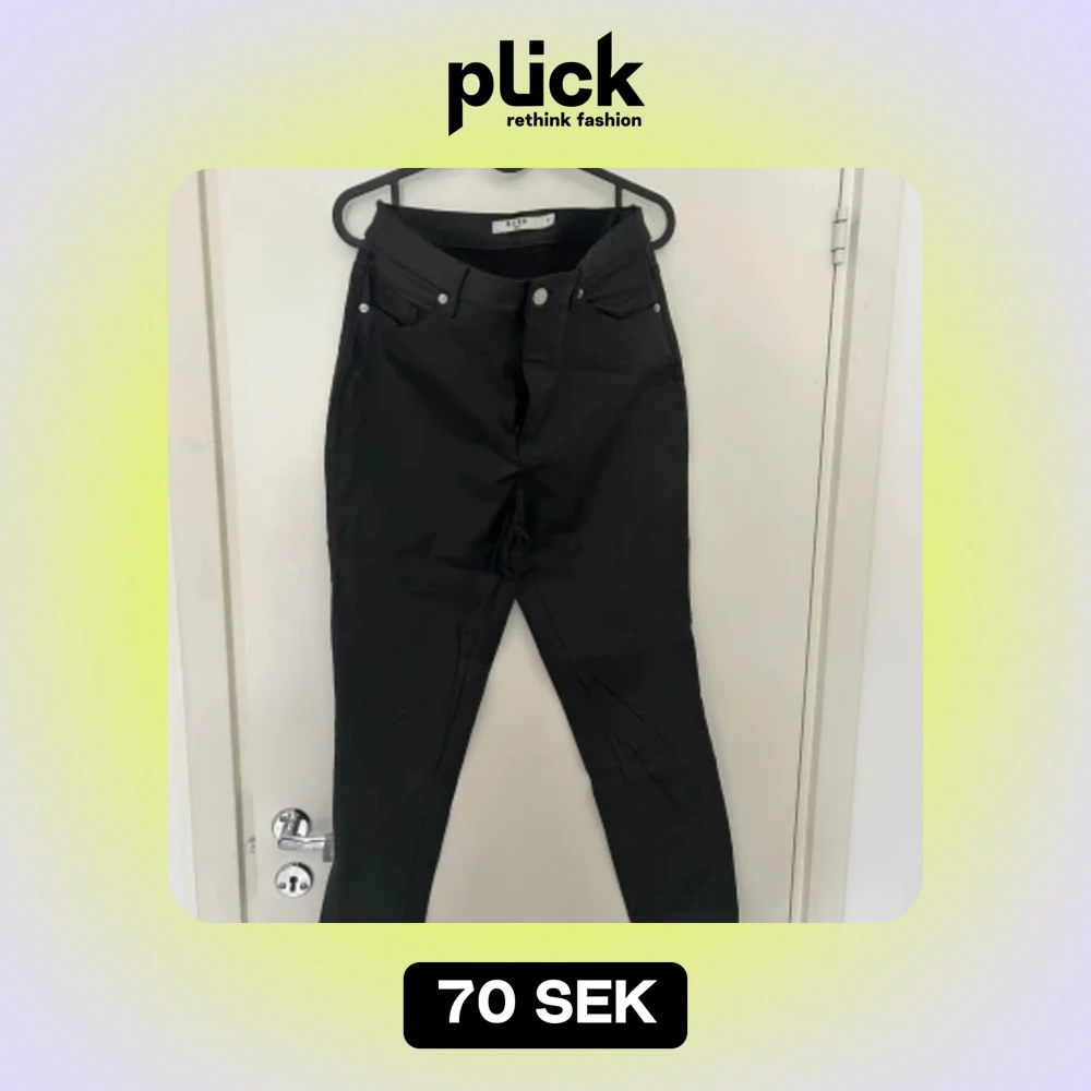 Jeans i läderimitation i bra skick. Mycket smickrande.