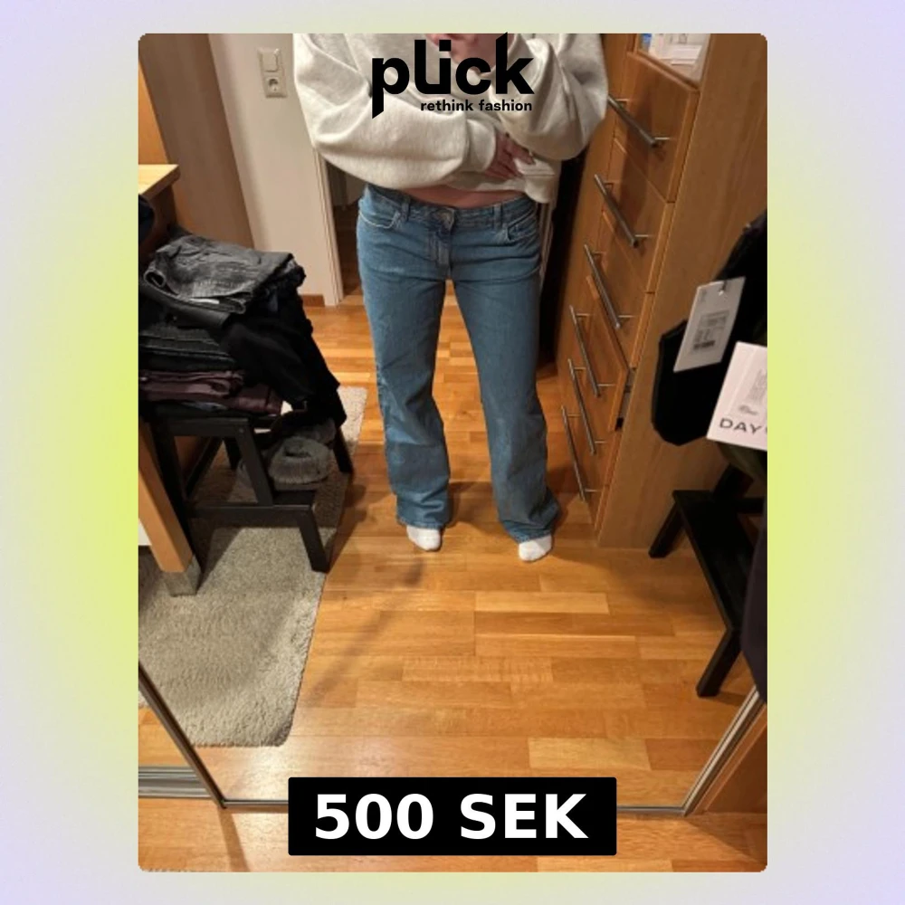 Populära jeans från NA-KD i en blå färg, vet inte det exakta namnet på färgen. Storlek 38. Är använda max två gånger men ser nya ut, har inga fel eller defekter alls. Nypris: 699 kr.