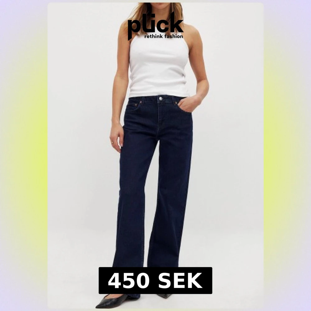 Snygga mörkblå jeans från NA-KD med klassisk femficksdesign och hög midja. Modellen har raka, vida ben och en stilren look som passar till sneakers eller boots. Jeansen är tillverkade i jeansmaterial och har en enkel knappstängning framtill.