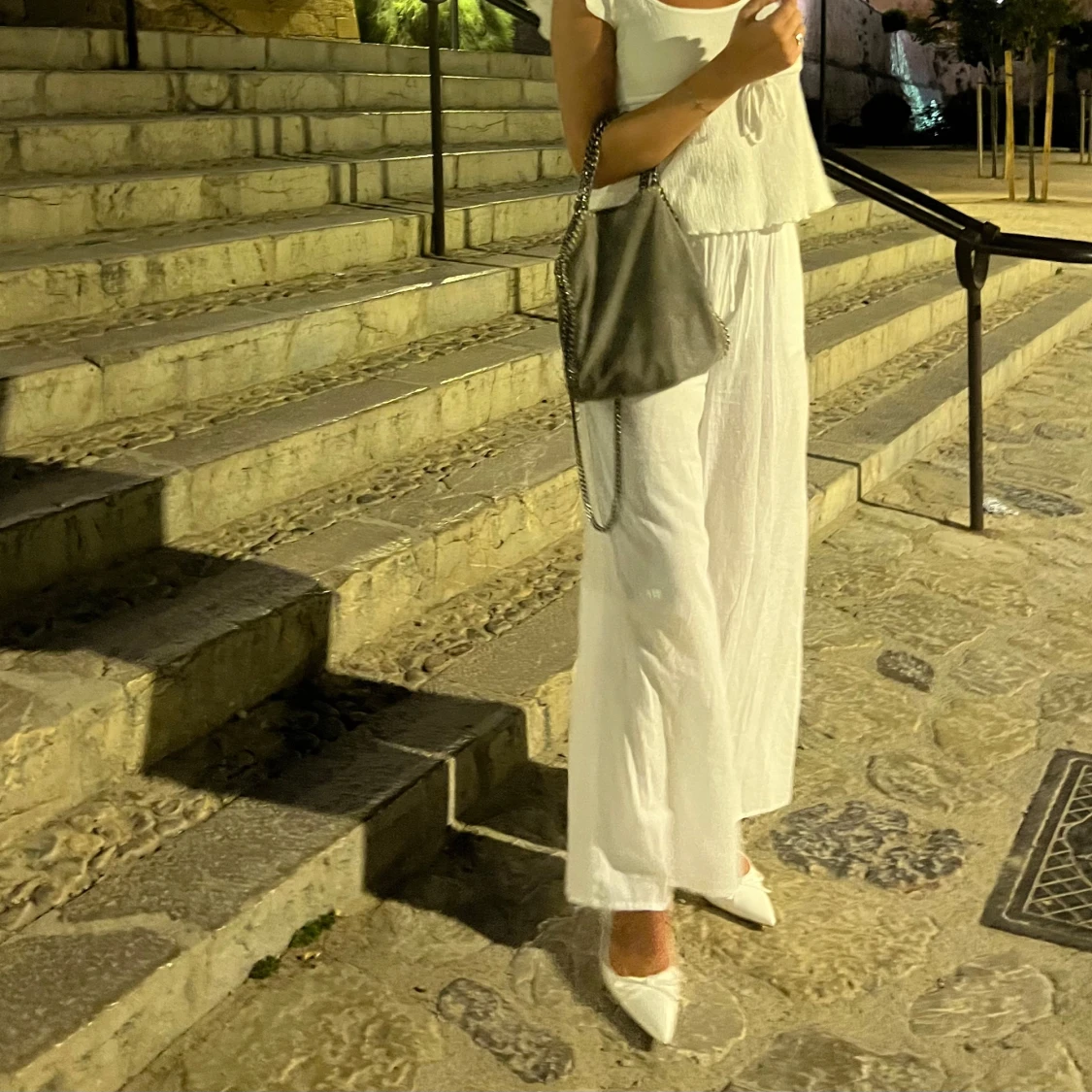 Säljer ett par luftiga och snygga vita linnebyxor med bred passform. Perfekta för varma dagar och ger en chill och stilren vibe. Köpta på primark använda en gång i storlek XS🌸