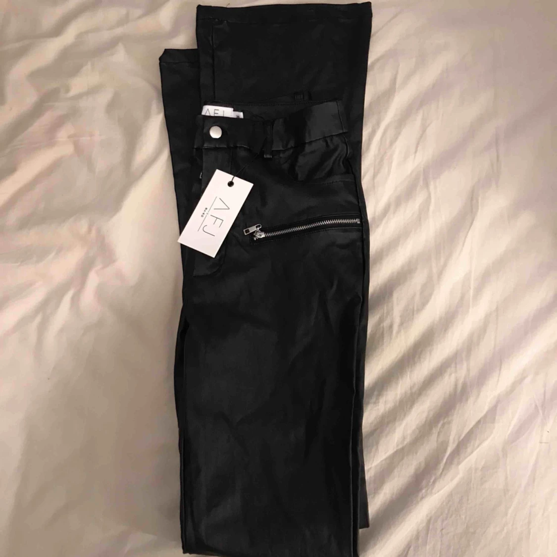 ett par skitsnygga ”waxed bootcut pant svart” från NA-KD, lappen är kvar som man ser på bild 2, alltså är dem aldrig använda, endast testade :) (ordinarie pris 599kr) köparen står för frakten!