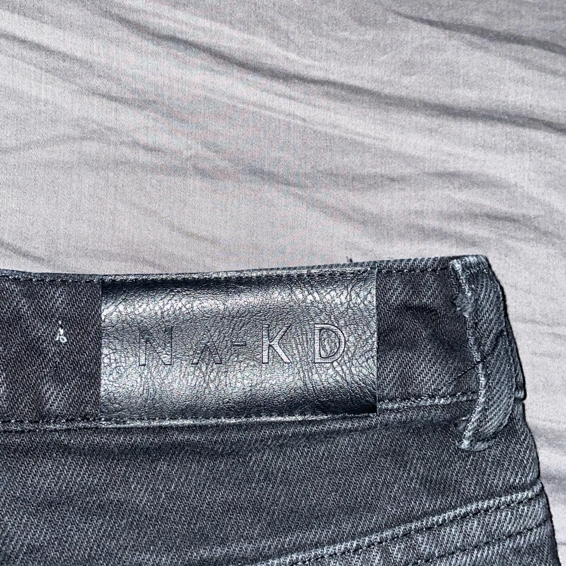 Svarta jeans från NA-KD med hål på knäna, skriv för fler bilder
