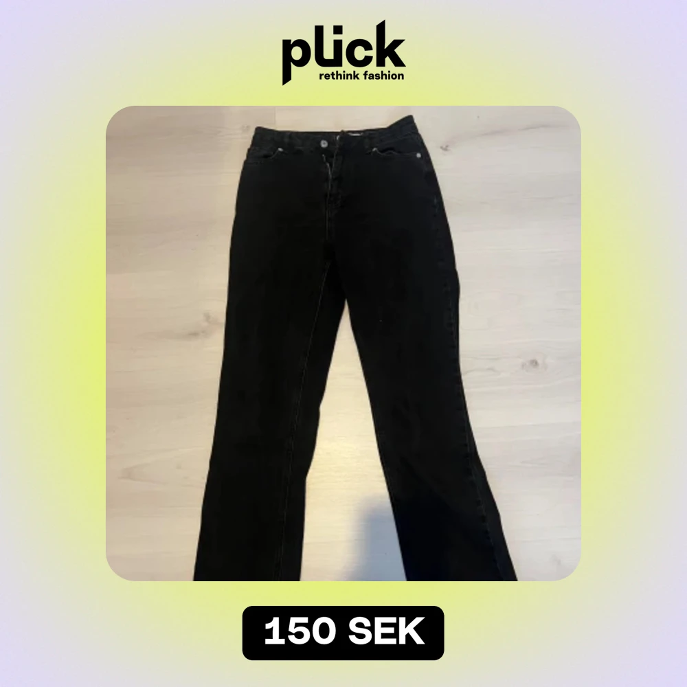 Säljer mina svarta raka jeans som har slitar där bak med dragkedja som man kan stänga, kan skicka fler bilder om det skulle önskas💓