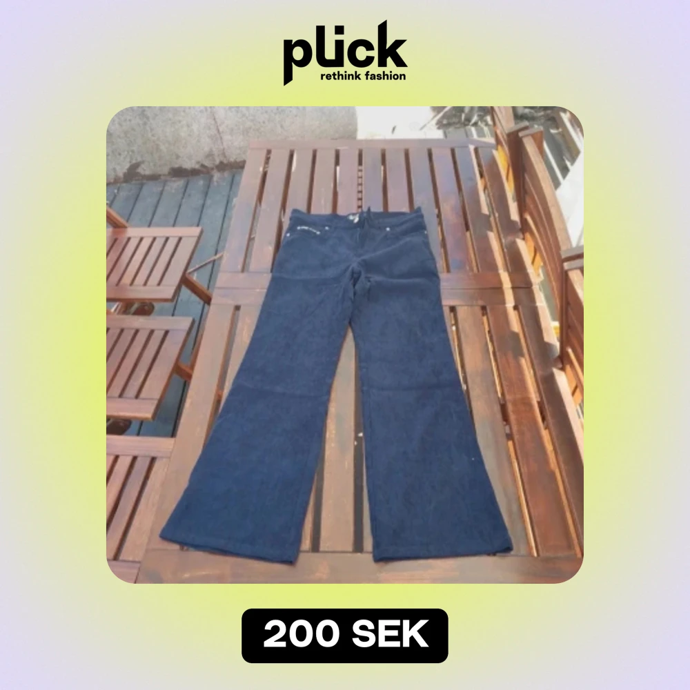 marinblå byxor med låg midja och flare på ben, vintage och sitter fantastiskt! för fler bilder eller frågor, skriv 💞