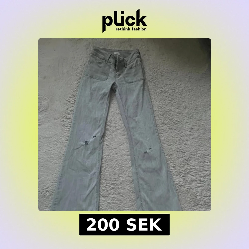 Lågmidjade jeans från Nelly i storlek 32. Har små hål på knäna (syns på bild 4-5) men var de när jag köpte dom🩷