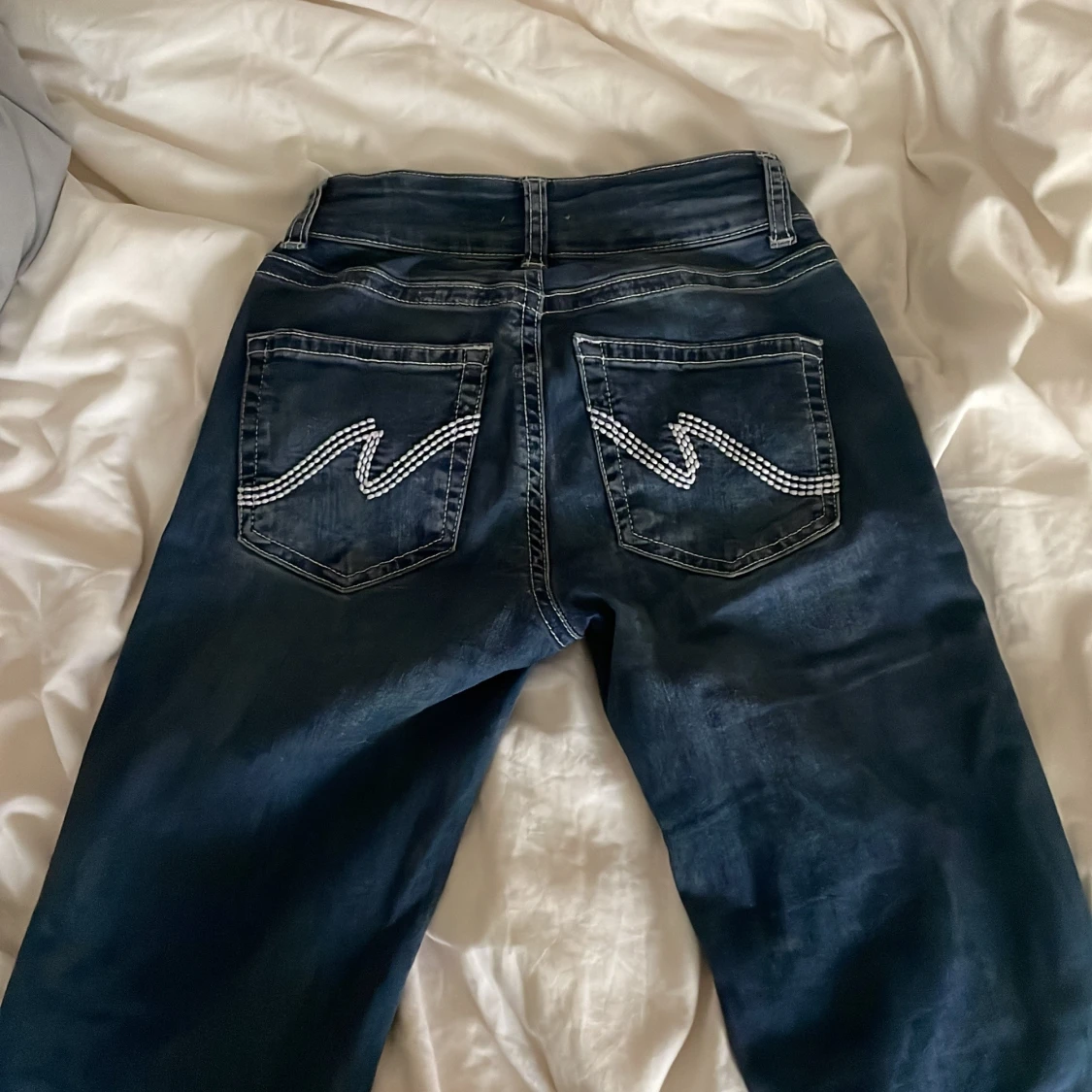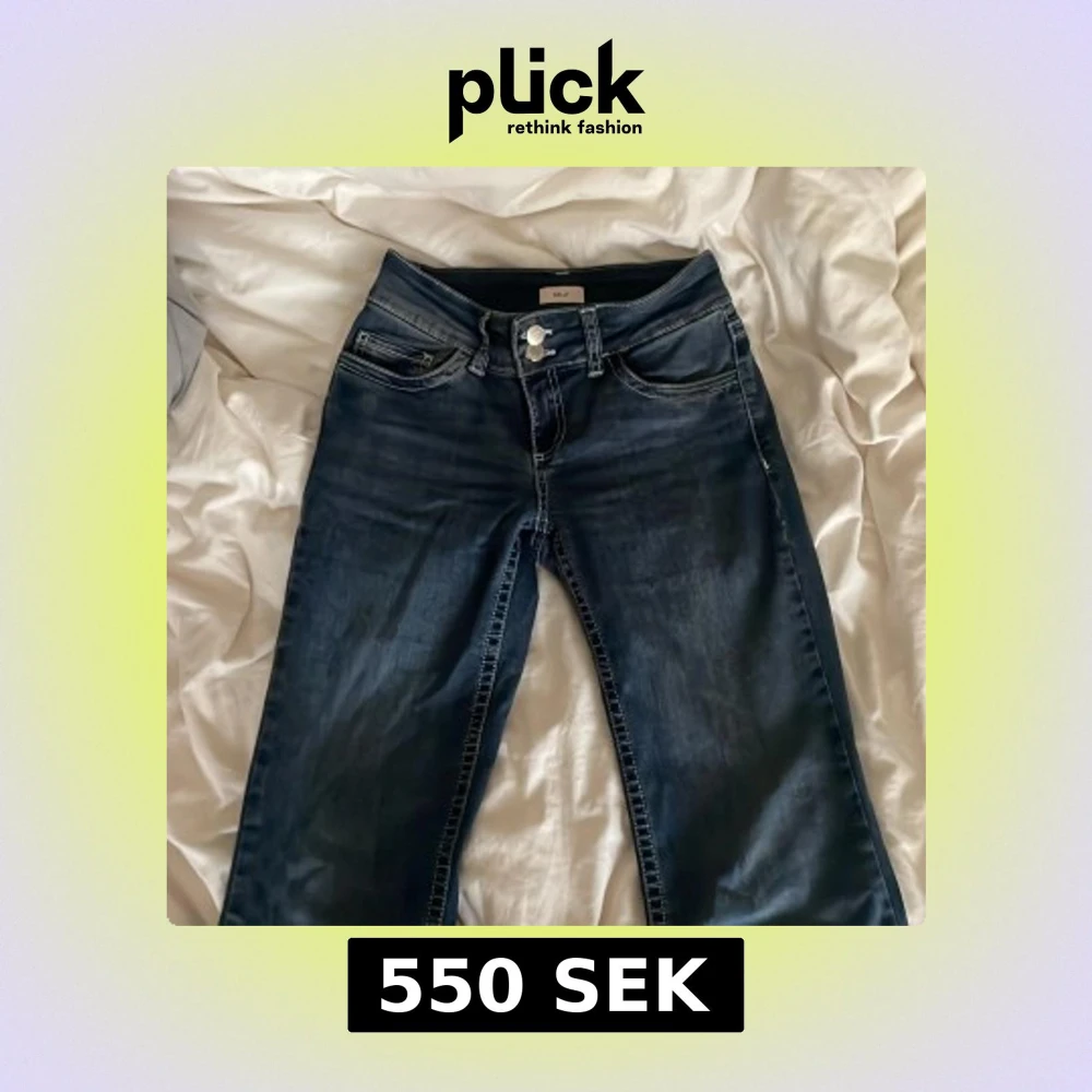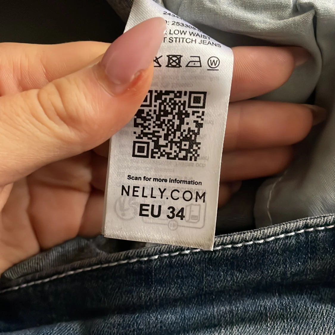 Snygga mörkblå jeans från Nelly med låg midja. Jätte bra skick 💓storlek 34 men väldigt stretchigt material