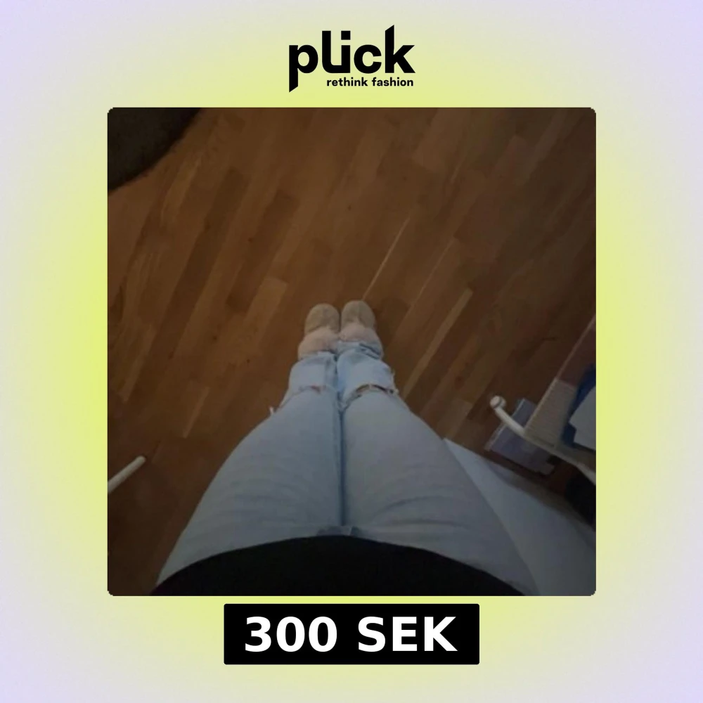Säljer ett par ljusblå jeans nelly med rosa fickor med hål på knäna❤️❤️