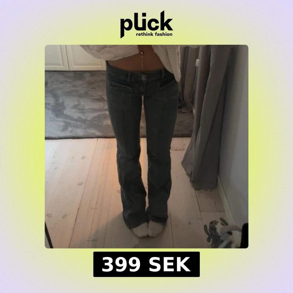 Säljer ett par blå jeans med bootcut passform och snygga sömmar längs benen. Byxorna har låg midja och coola fickdetaljer framtill. Köpta på nelly, tror ej de säljs längre.💗