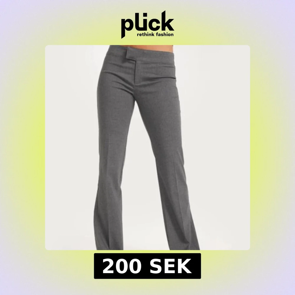 Snygga grå kostymbyxor med klassisk rak passform. Byxorna har låg midja och är perfekta för en stilren look. Använda några gånger och lite noppriga men väldigt fina. Köptes för 400 kr.
