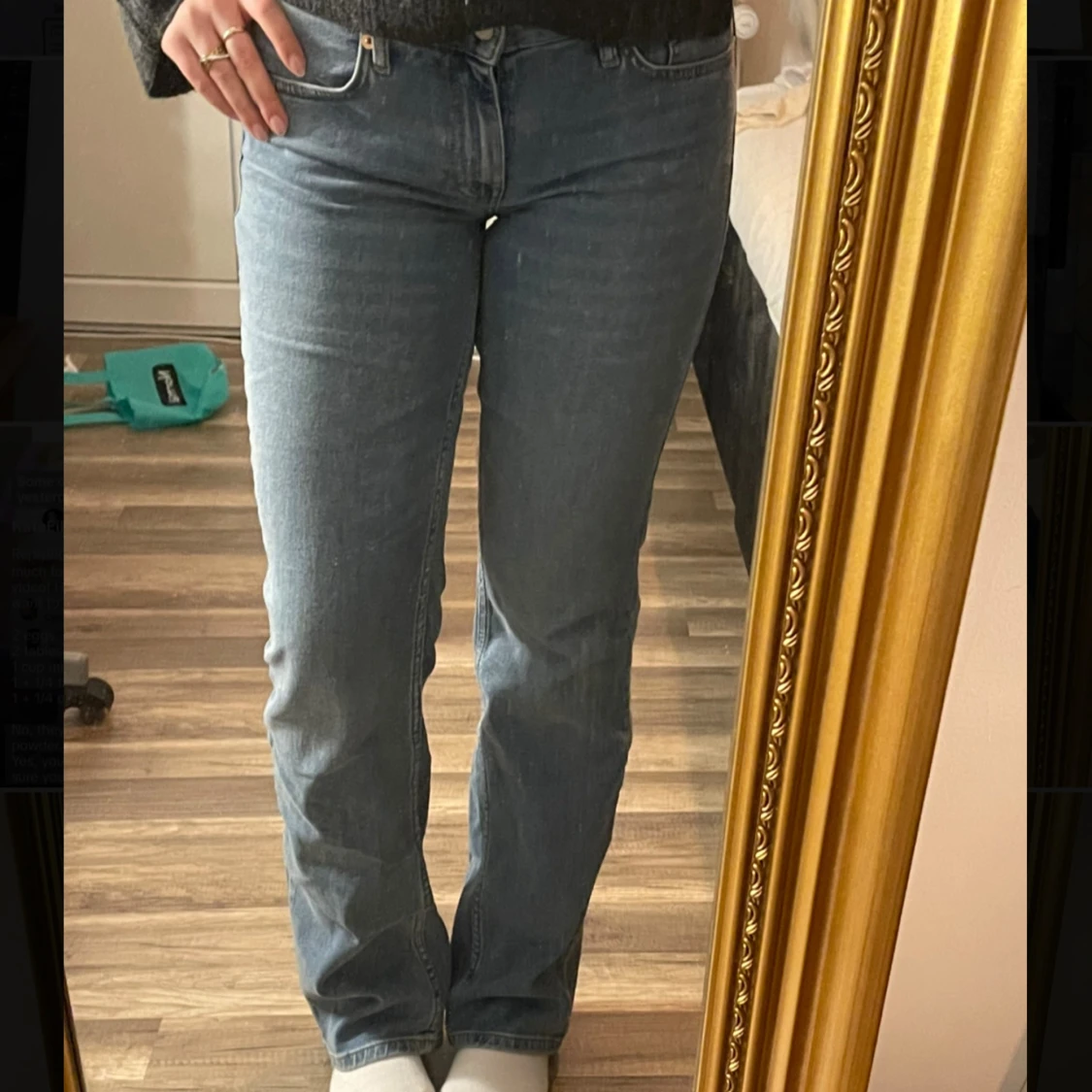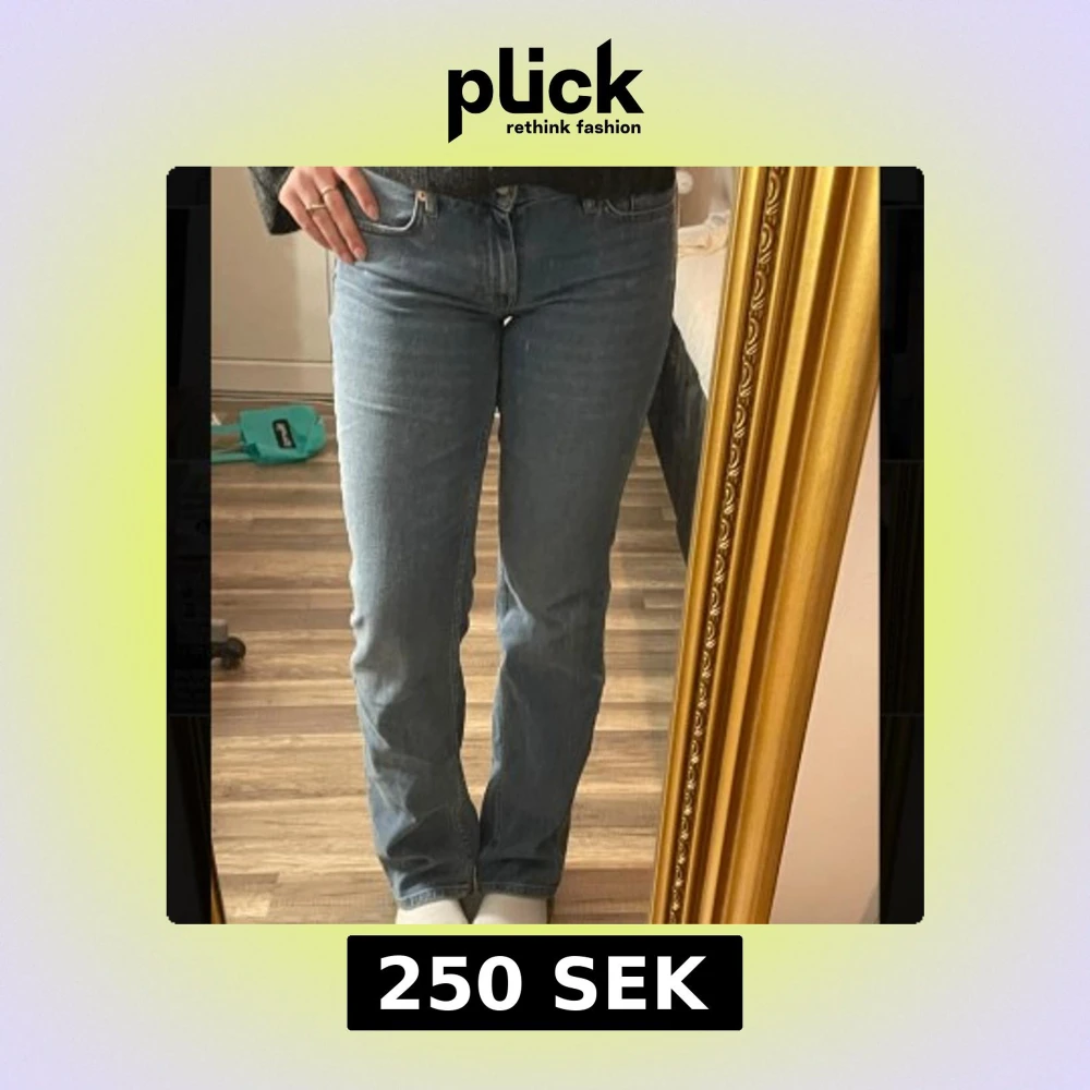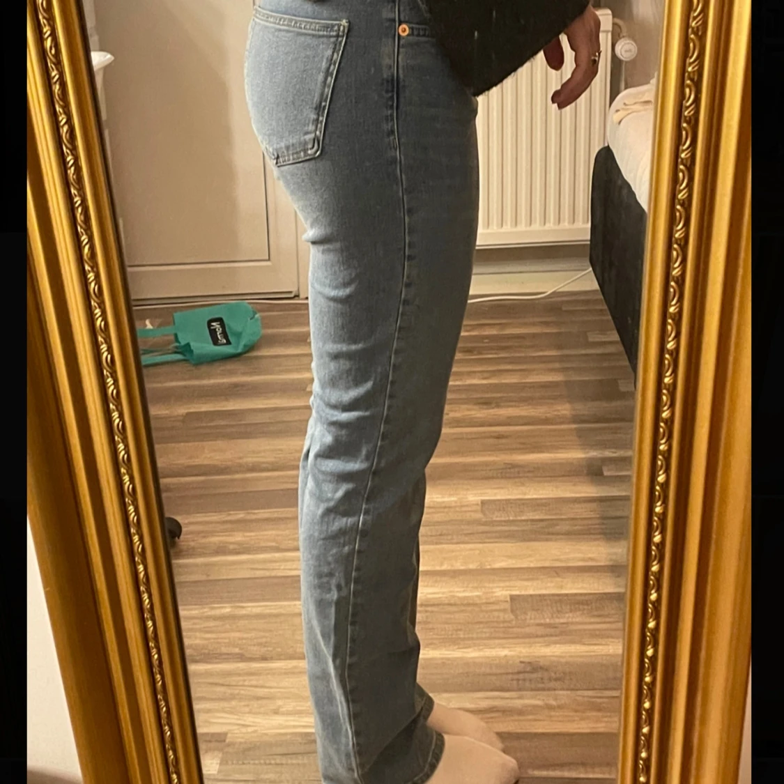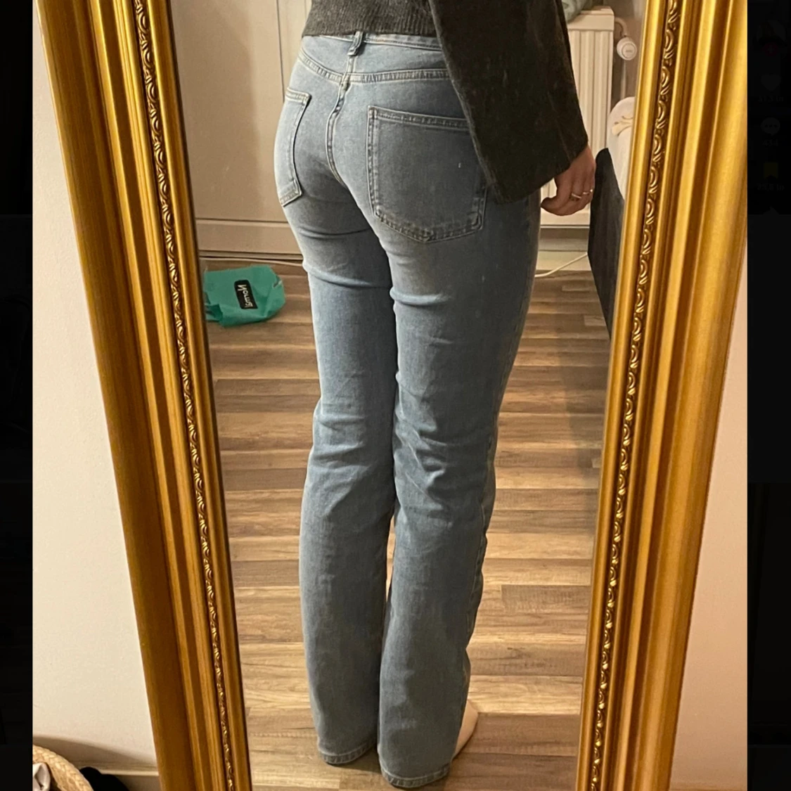 Säljer ett par ljusblåa jeans med raka ben från Nelly. Jeansen har normal midja och är super sköna. Använda fåtal gånger!