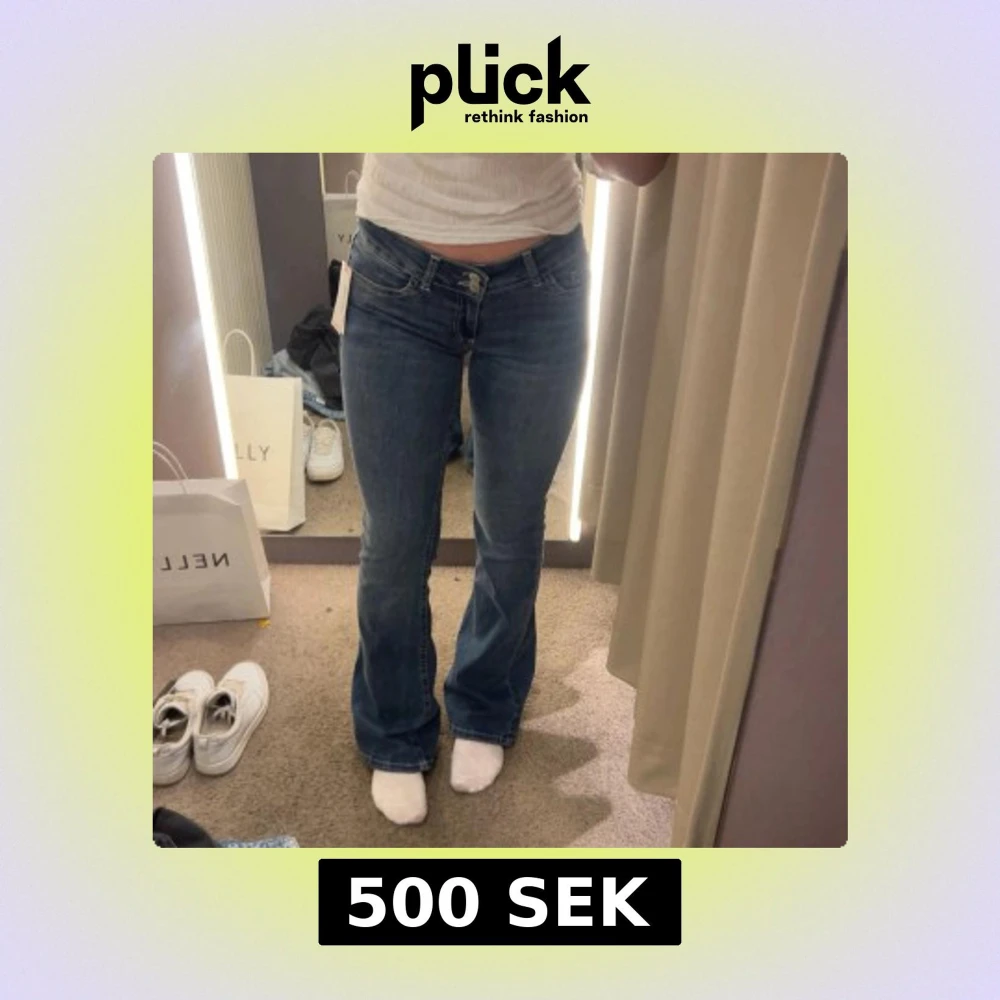 Snygga blå bootcut jeans med broderad detalj på bakfickorna😍😍 Nästan helt oanvända då jag vill ha en mindre storlek!