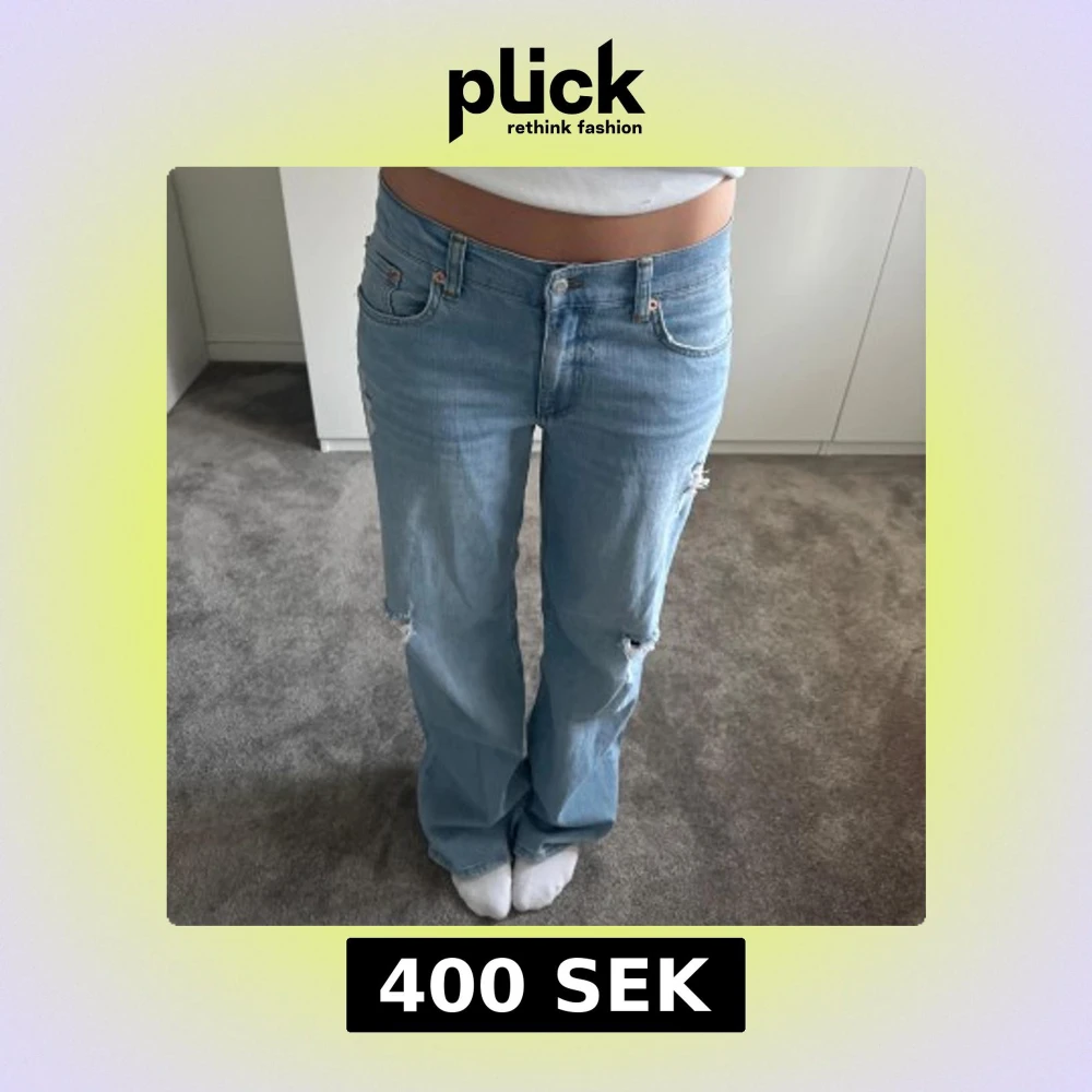 Ljusblå jeans med slitningar