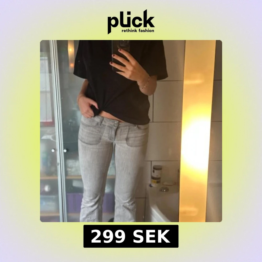 Snygga ljusgrå jeans med bootcut passform och stora framfickor. Baktill finns fickor med lock och knapp. Jeansen har låg midja och är tillverkade i ett klassiskt denimtyg. Perfekta för dig som gillar en retroinspirerad look. Dom är från Nelly och är i storlek S/M