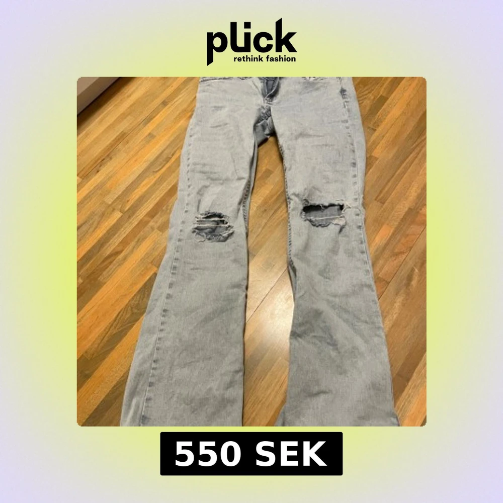 Ljusblå jeans med slitna hål på båda benen från Nelly. Jeansen är lågmidjade och boutcut 😊 Storleken är 38 short. Jag är 171 och dom passar perfekt i midjan men lite för korta ☹️ Det är anledning till att dom säljs! Väldigt fint skick