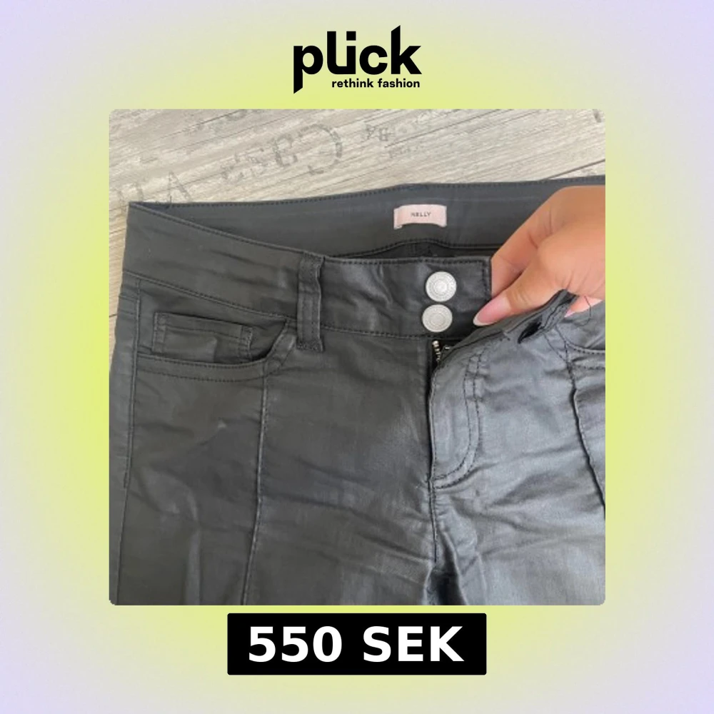 Snygga svarta skinnbyxor från Nelly med bootcut-modell och låg midja. Endast testade och säljer då dem är för stora