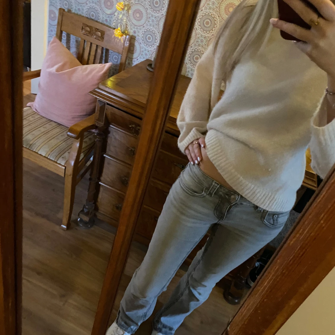 Super fina grå jeans med låg midja och bootcut!💘💞