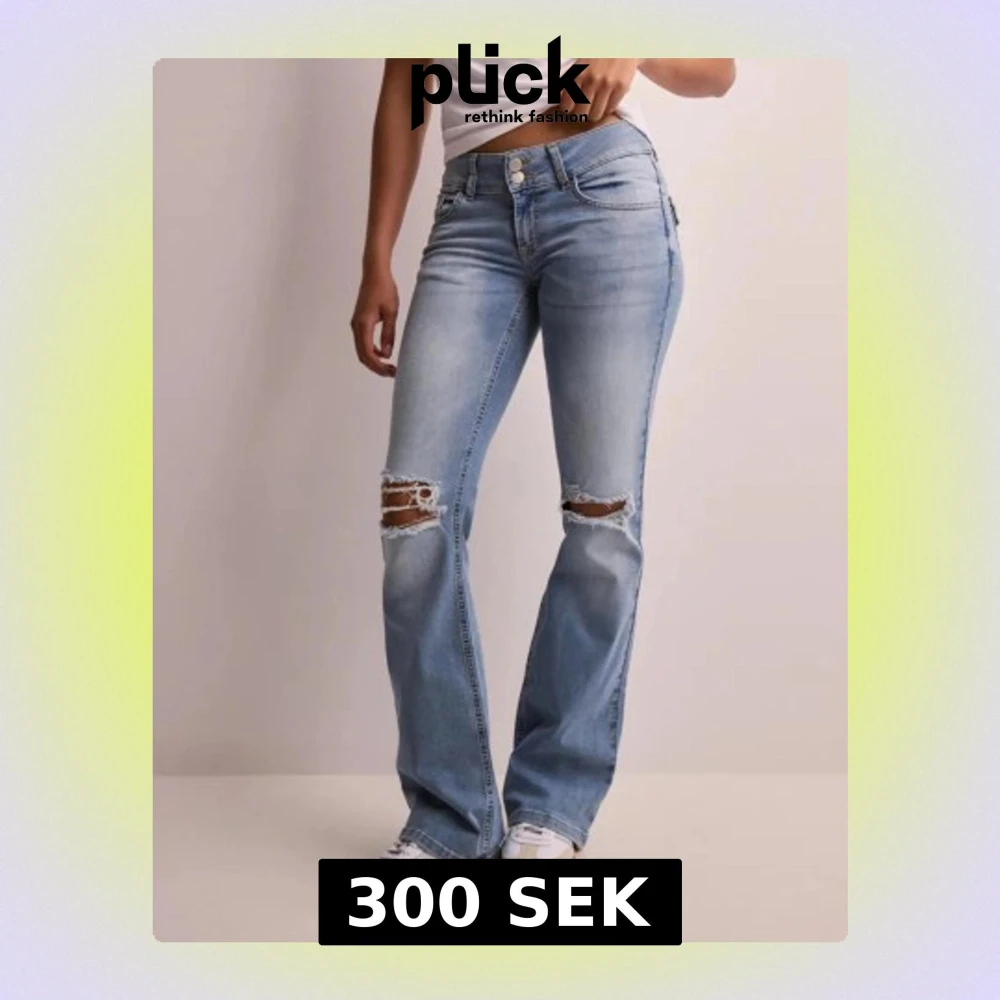 Snygga ljusblå bootcut jeans från Nelly. Lite trasiga längst ner men inget man lägger märke till.💗