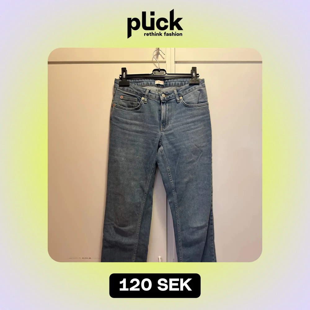 Såljer ett par ljusblå lågmidjade jeans från Nelly då jag inte använder dom längre. Dom är raka i benen och lägger sig snyggt över skorna. Endast använda några få gånger så inga tydliga tecken på användning