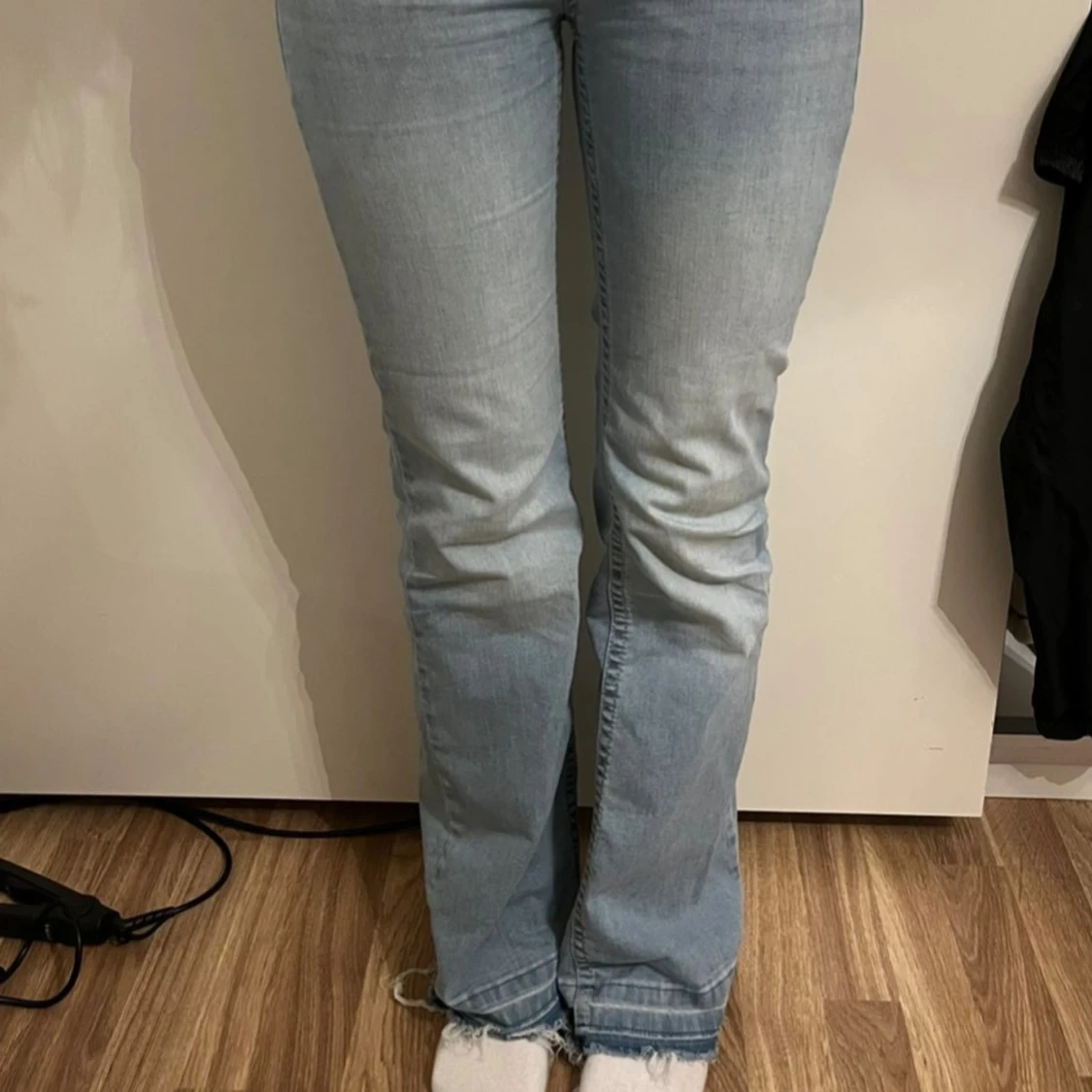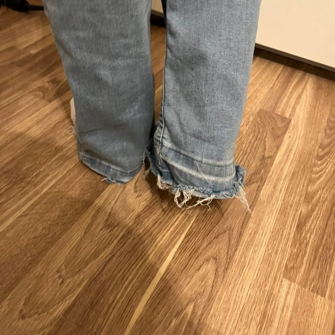 Ljusblå bootcut jeans med råa kanter