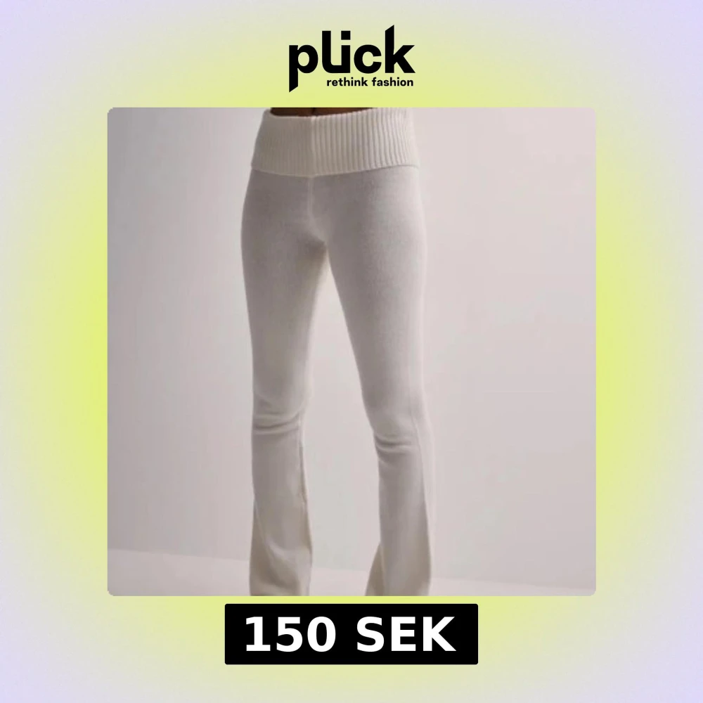 Mysiga vita stickade byxor med bred ribbad midja och lätt utsvängda ben. Perfekta för chill dagar eller när du vill vara extra bekväm. Byxorna har en mjuk och följsam passform som sitter snyggt på kroppen.💕