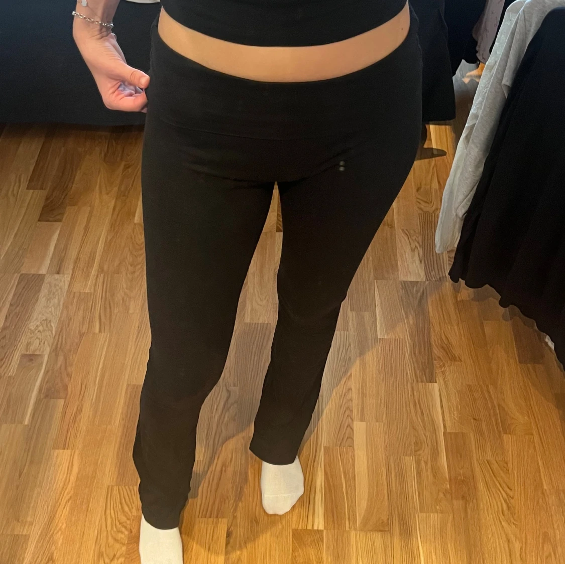 Svarta leggings med bootcut-snitt och hög midja. Mjukt och stretchigt material som sitter skönt och formar sig efter kroppen. Perfekta för en avslappnad och trendig look.