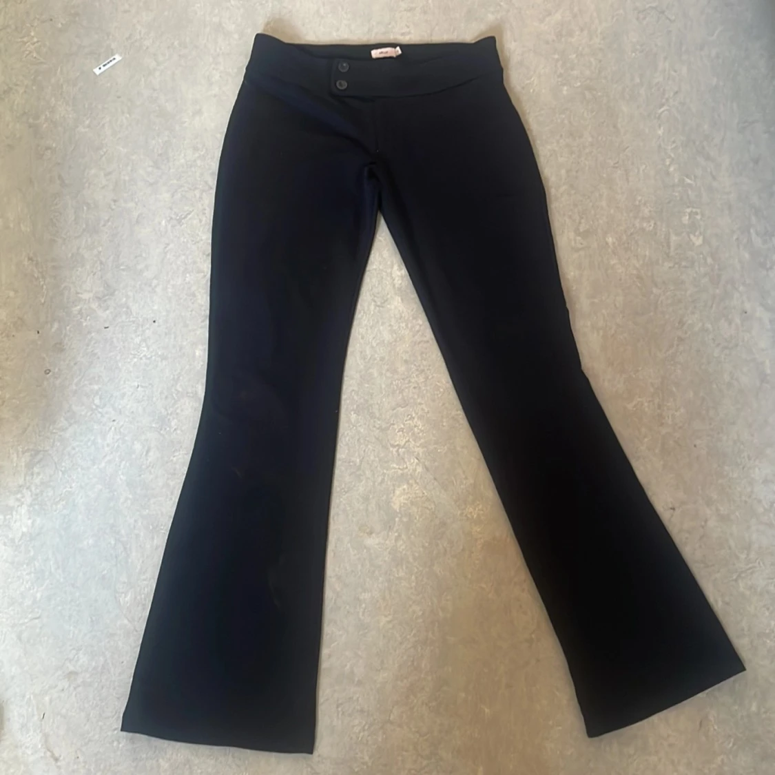 Snygga svarta bootcut-byxor från Nelly i storlek S. Byxorna har hög midja, två knappar framtill och är tillverkade i ett mjukt, stretchigt material som sitter skönt. Perfekt för dig som gillar en klassisk och stilren look. Nypris 350