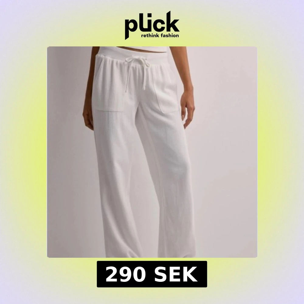 Snygga och bekväma vita mjukisbyxor med elastisk midja och snörning. och praktiska fickor framtill. Perfekta för en avslappnad stil.
