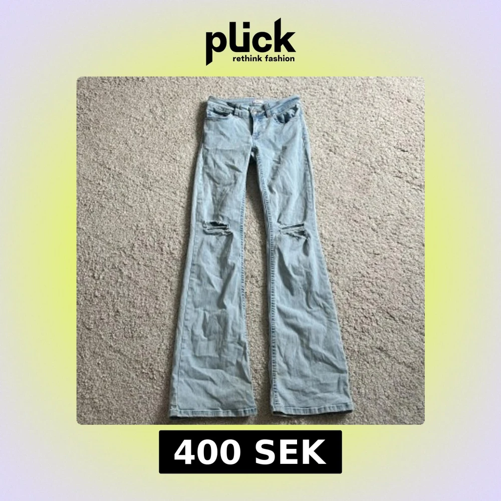 Bootcut jeans i ljusblå denim från Nelly med slitna knän och snygga rosa broderade detaljer på bakfickorna. Klassisk femficksmodell med låg midja och vida ben. Perfekta för dig som gillar en retro vibe och vill sticka ut lite extra.