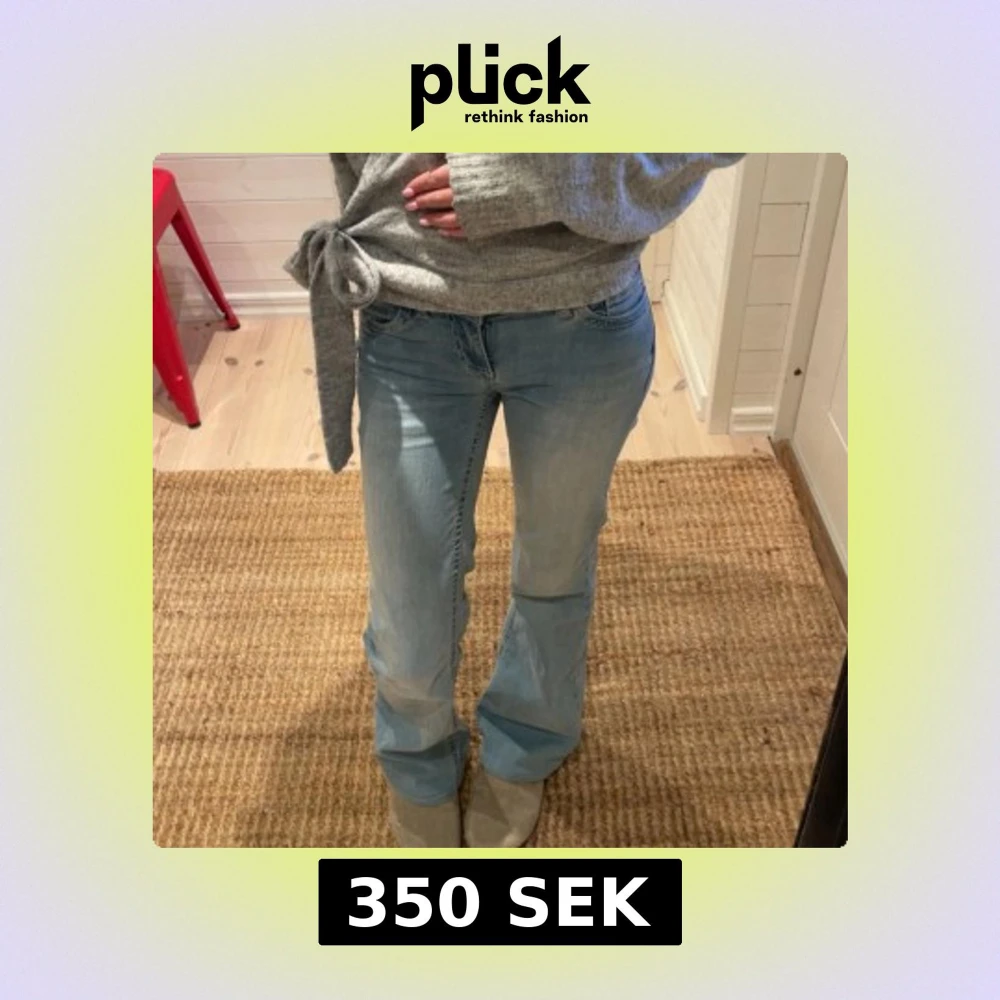 Säljer dessa snygga ljusblå jeans från Nelly med bootcut passform och klassisk femficksdesign. Jeansen har låg midja, har lagt upp de för ett tag sedan så det är kortare i benen än ett par nya.💕