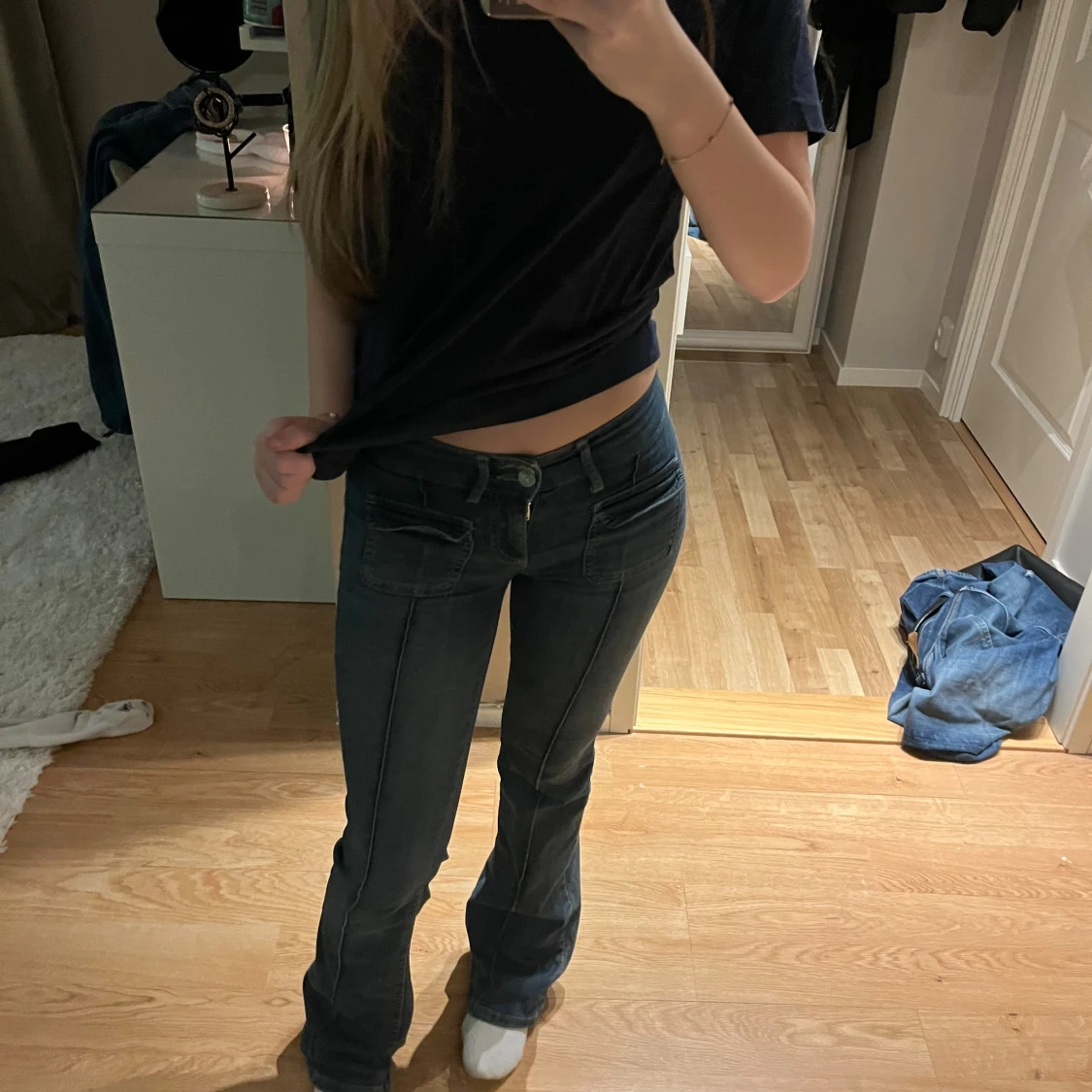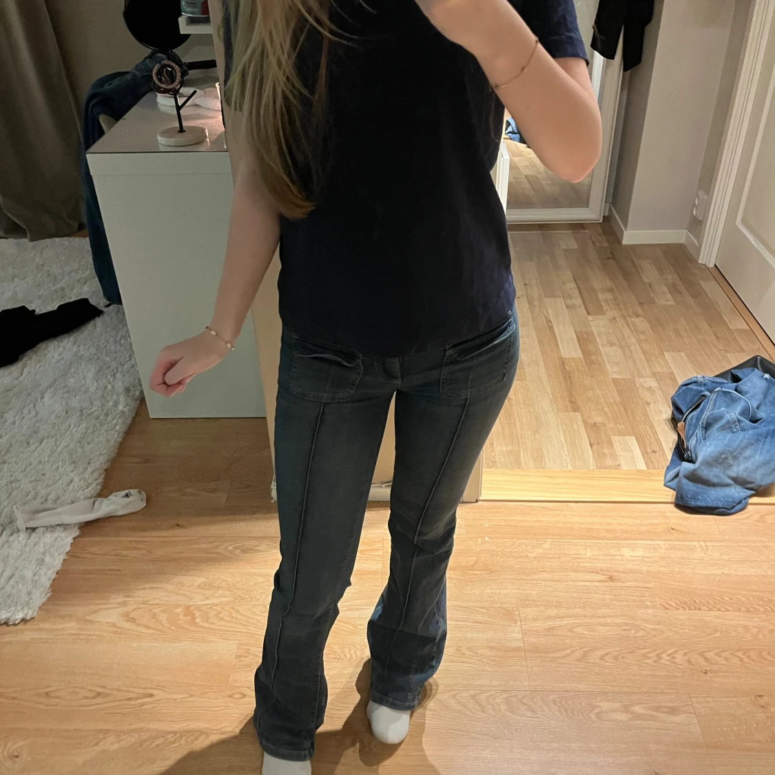 Snygga mörkblå bootcut jeans från Nelly med låg midja. Jeansen har klassiska fickor fram och bak, markerade sömmar och är tillverkade i stretchigt denim för en bekväm passform. Perfekta för dig som gillar en retroinspirerad look.