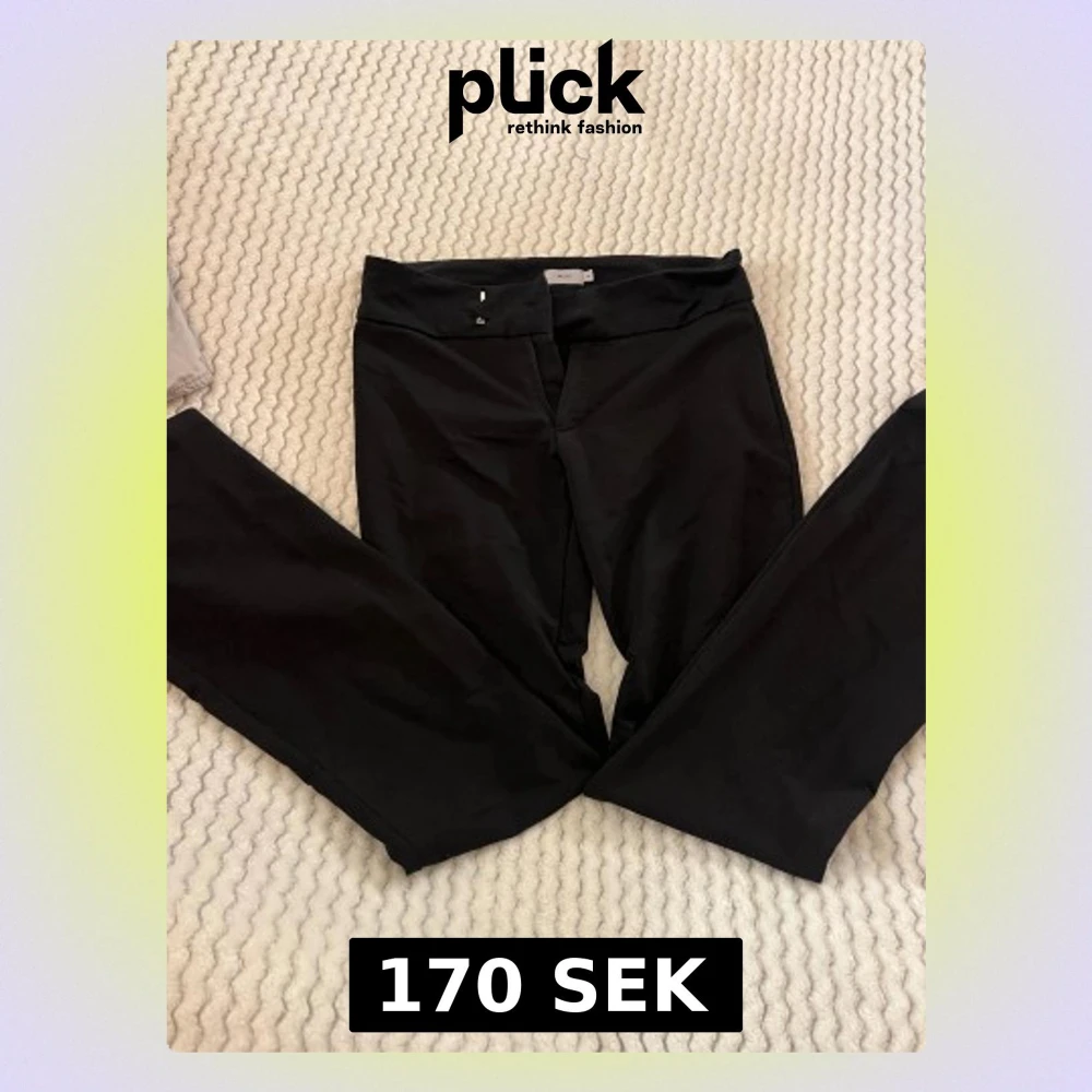 Snygga svarta low waist bootcut kostymbyxor från Nelly i storlek XS. Fästet där man knäpper byxorna har börjat gå av, men går fortfarande att stänga.