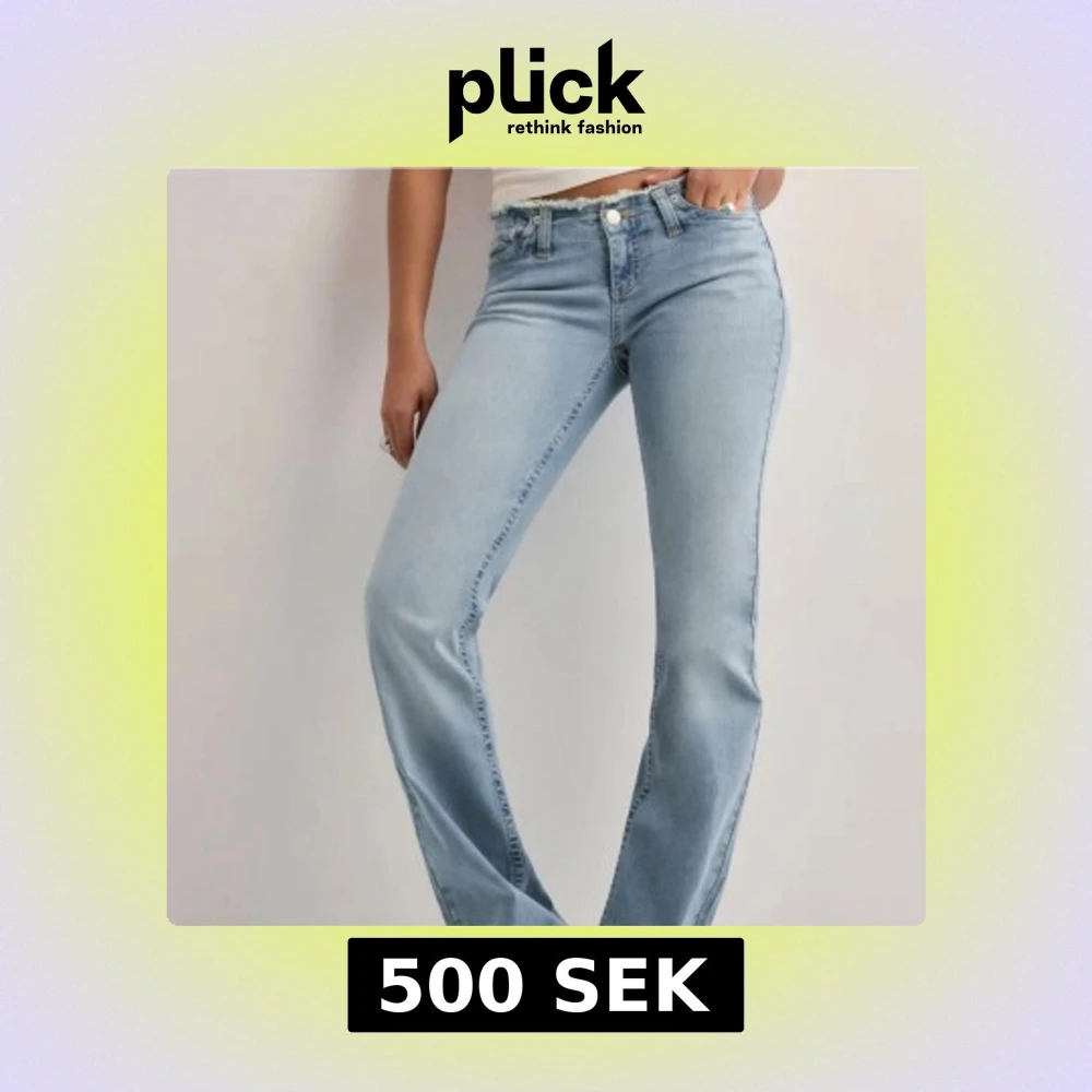 Snygga ljusblå jeans med bootcut passform och rå, fransad kant upptill. De är super lågmidjade o så niceee.