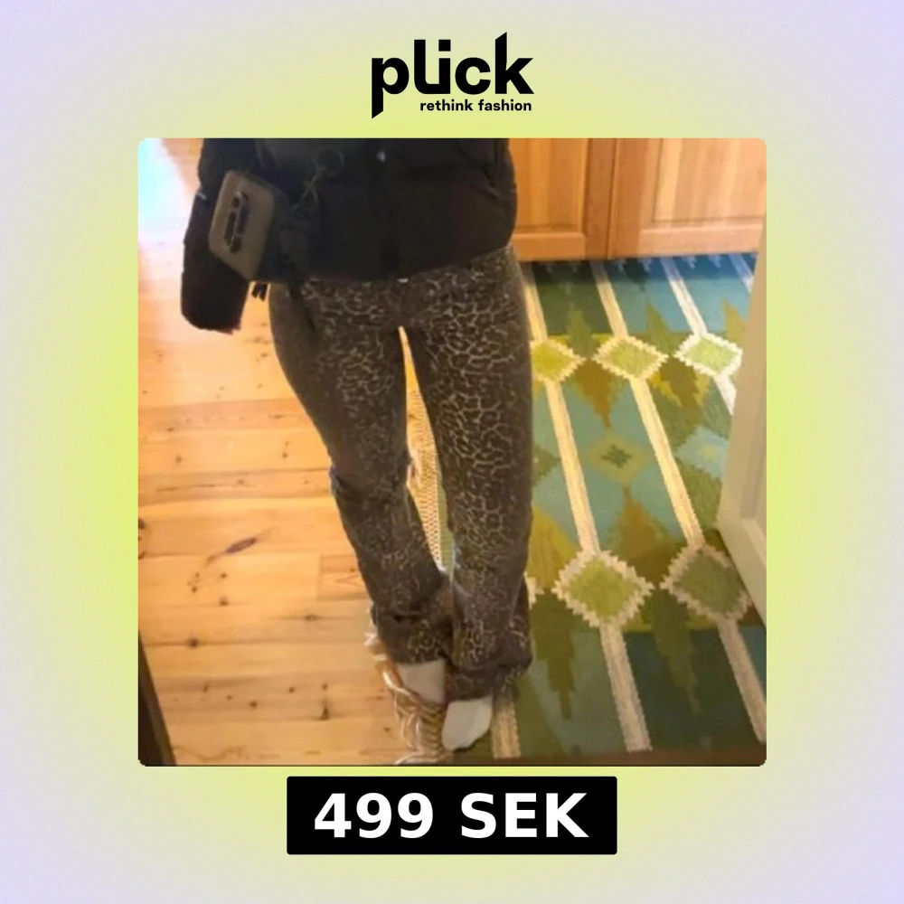 Säljer ett par snygga jeans från Nelly med leopardmönster i grå och beige toner. Byxorna har normal midja, klassisk femficksmodell och raka ben med lätt bootcut. Materialet är stretchigt för en bekväm passform. Perfekta för dig som vill sticka ut.
