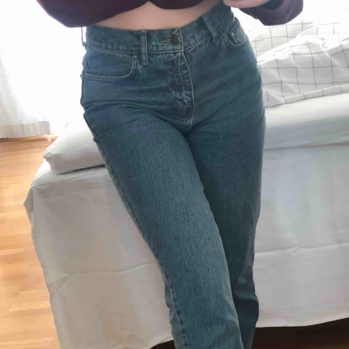 Momjeans från Nelly. Använda fåtal gånger. Skulle vara snyggt att klippa hål i knät eller liknande, vid snabbt köpt kan jag sänka priset ännu mer. Nypris är typ 500