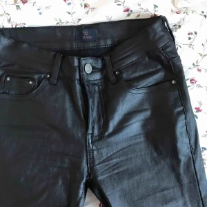 snygga ”skinn”/latex byxor från nelly, låg/regual waist. storlek S. använda men i fint skick, superbekväma! fri frakt 💛