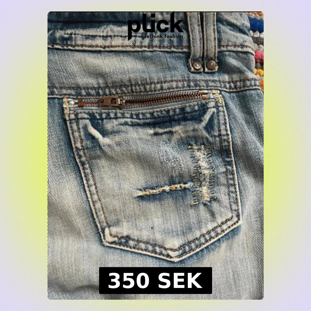 snygga och unika baggy/flared jeans från märket used//jeans! köpte de på humana secondhand i malmö 😌hittar inga lappar om storlek så kontakta vid mått eller frågor!