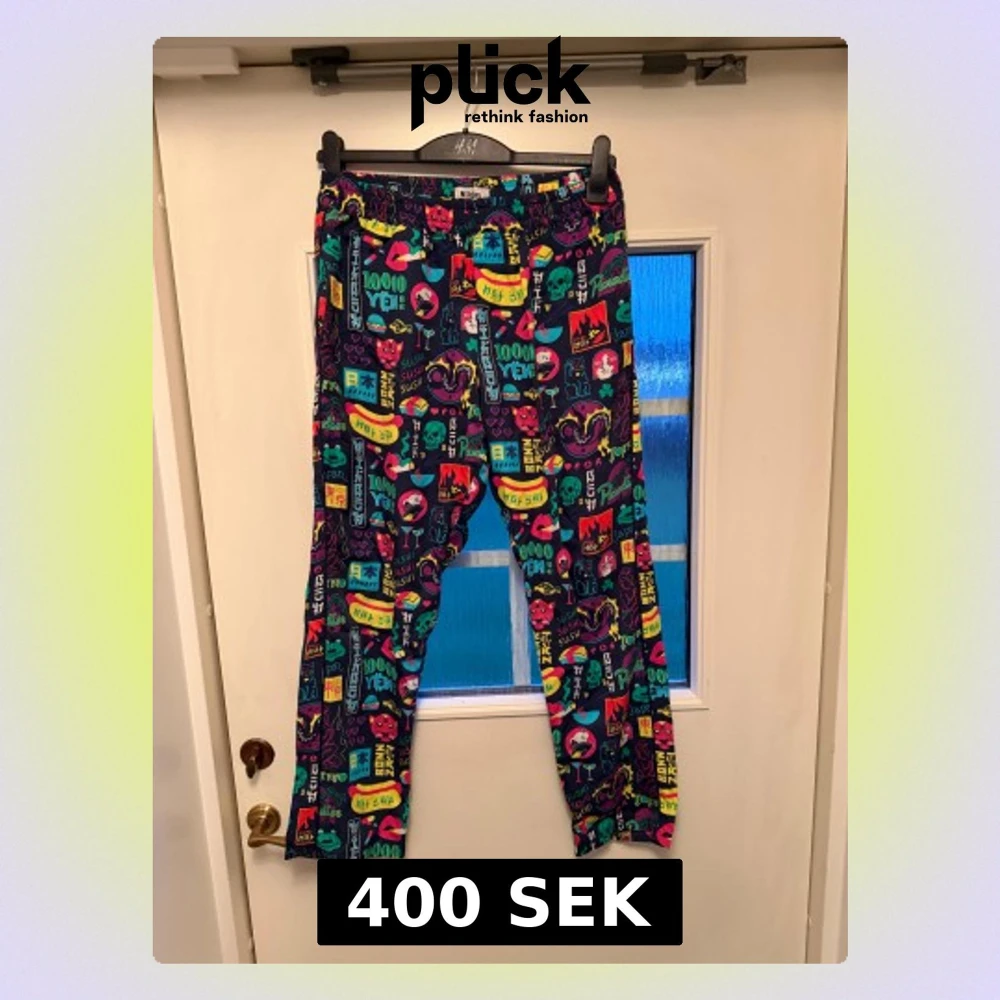 Säljer ett par mjukisbyxor från Nike med färgglatt och japanskt inspirerat mönster. Byxorna har elastisk midja och är gjorda i mjukt material, perfekta för chill dagar.