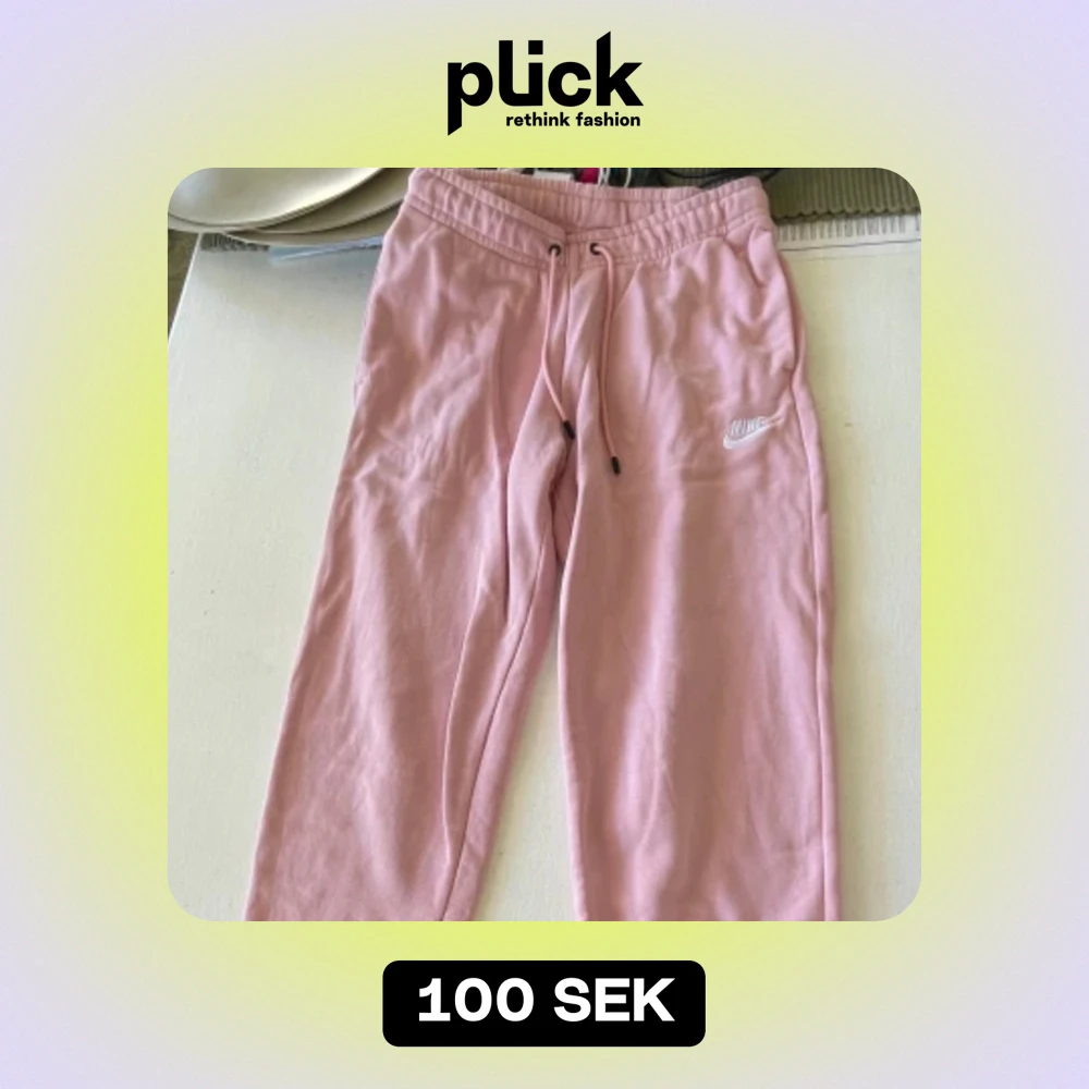 Sockervaddsrosa mjukisbyxor från Nike i bra skick. Passar mig längd som är 164 cm. Hör av er för fler bilder!