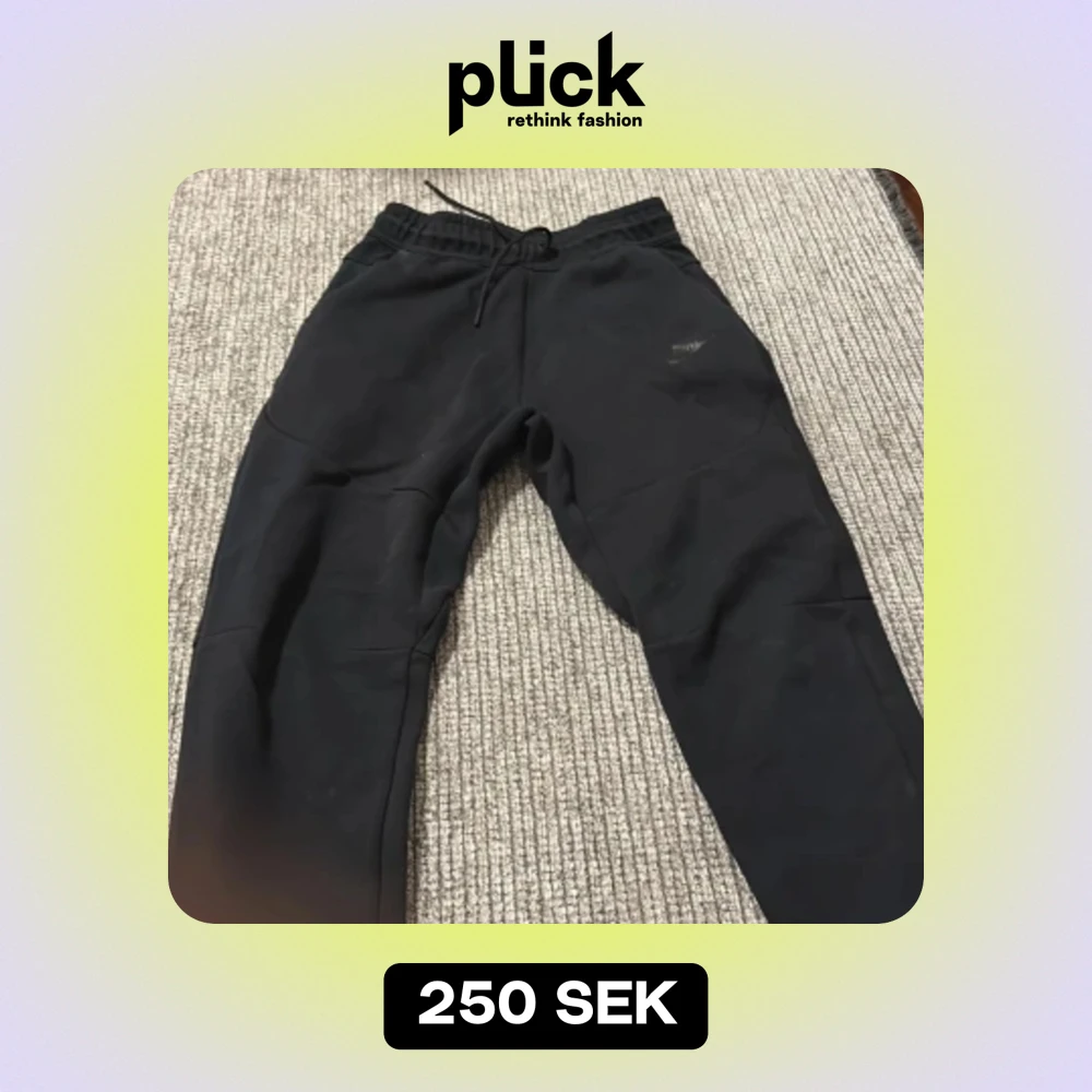 Säljer ett par svarta mjukisbyxor från Nike. De är superbekväma och perfekta för chill dagar eller träning. Byxorna har en elastisk midja med snörning för bästa passform. De är i bra skick och redo för nya äventyr!