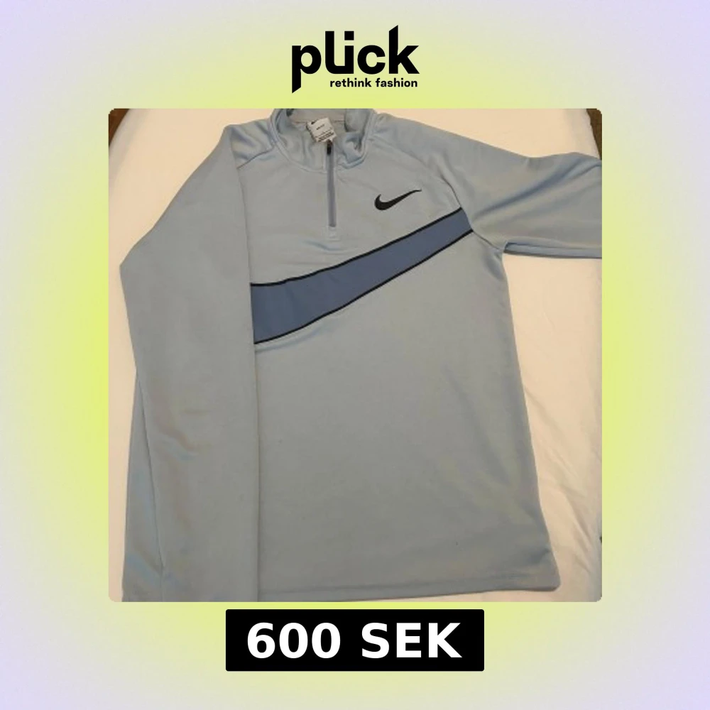 Säljer ett par ljusblå Nike dress med svarta detaljer och en diagonal mörkblå panel på benen. Finns bara tröja nu men om du behöver byxor med kan beställa. Perfekt inför sommar och träning