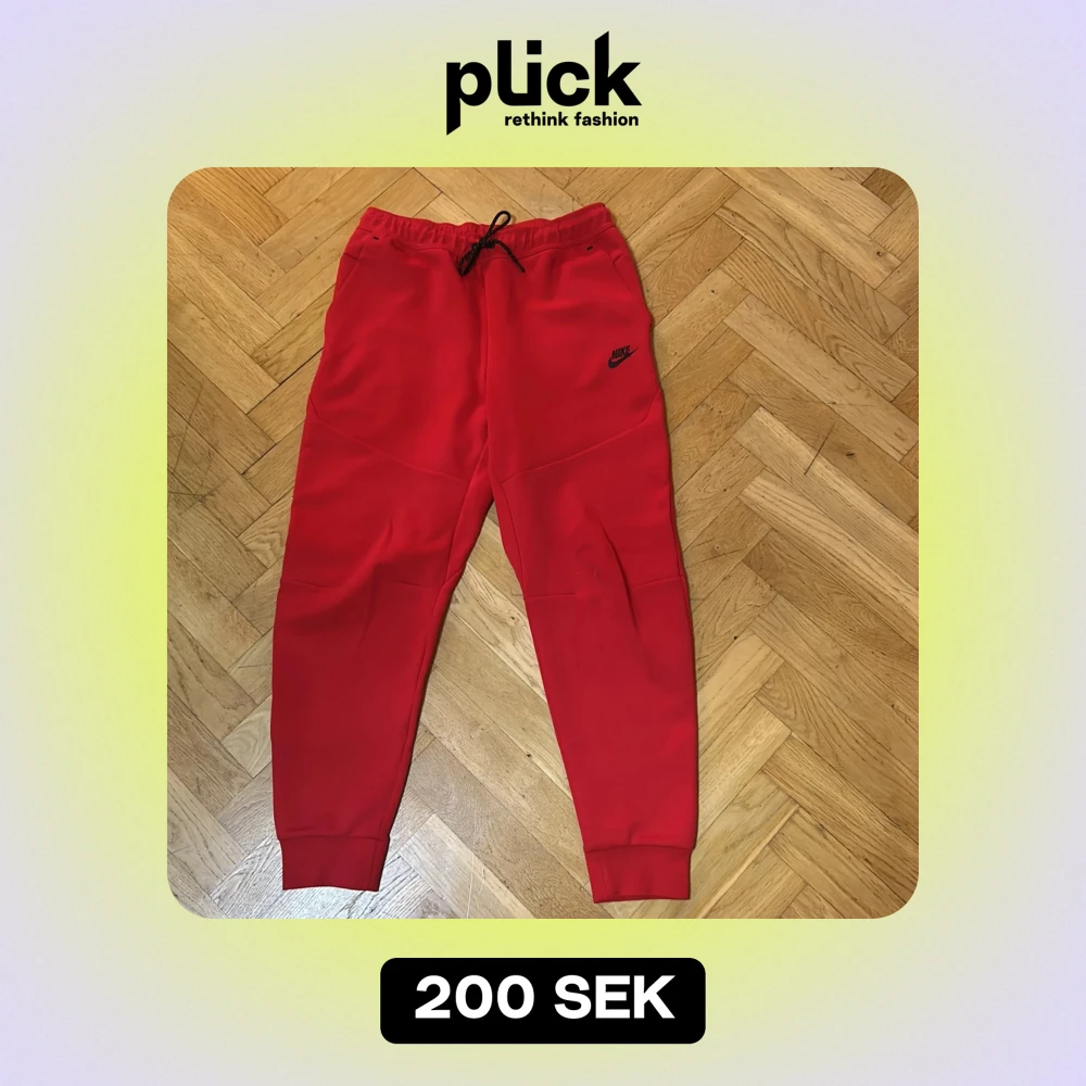 Säljer ett par snygga röda mjukisbyxor från Nike i storlek L. De har en elastisk midja med snörning och en praktisk dragkedja på baksidan. Perfekta för träning eller en chill dag hemma. Superbekväma och i bra skick!