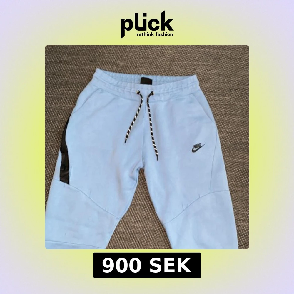 Nike mjukisbyxor i ljusblått med svart logga på benet och coola svarta detaljer på sidan. Byxorna har elastisk midja med svartvit snörning och är gjorda i mjukt bomullsmaterial. Perfekt för chill eller träning, riktigt sköna och snygga.